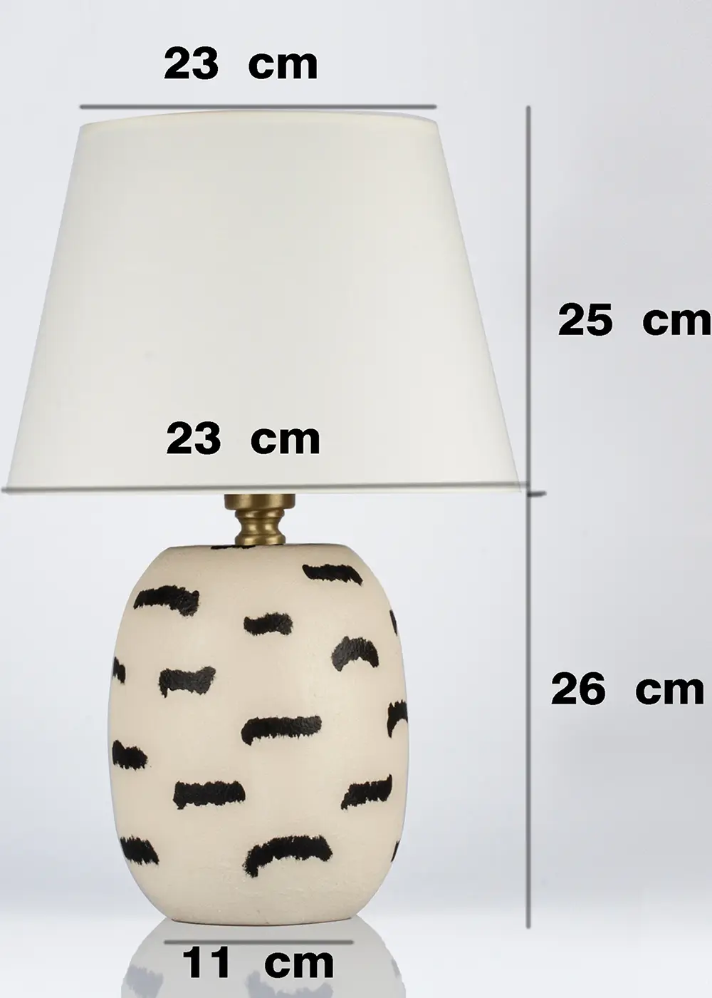 Krem Şapkalı Siyah Fırça Desenli Seramik Abajur – Zamansız ve Doğal Dekoratif Masa Lambası