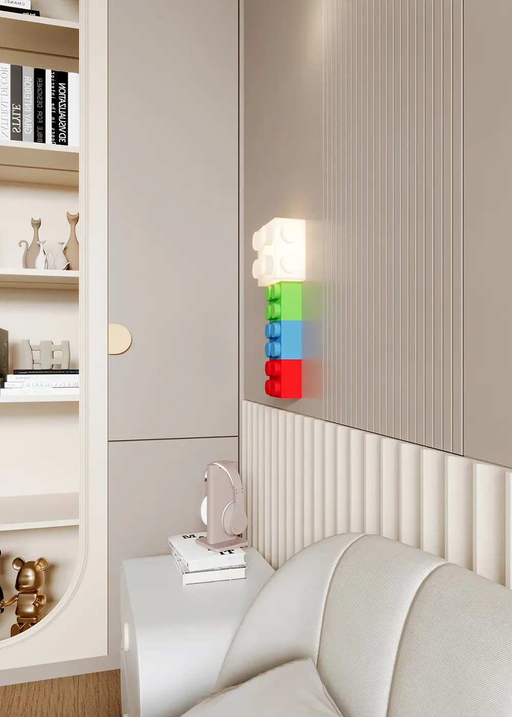 Strudimora’nın eğlenceli dünyasını yansıtan Brivvo Aplik, çocuk odalarına hem oyun hissi hem de sıcak bir atmosfer kazandıran özgün bir aydınlatma ürünü olarak öne çıkar. Blok formundan ilham alan renkli yapısı, çocukların hayal gücünü desteklerken; modern tasarımıyla mekâna dinamik ve enerjik bir karakter katar.