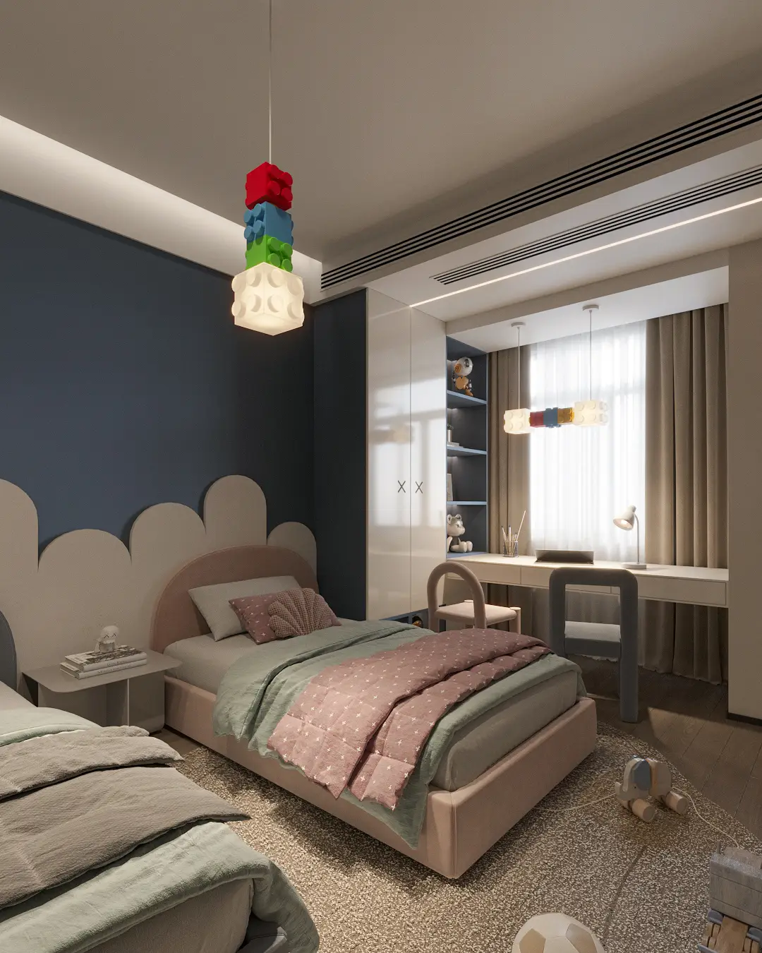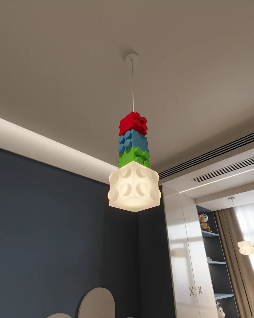 Renkli blok detayları, çocuk odalarında oyun hissini desteklerken aynı zamanda modern bir dekoratif obje olarak öne çıkar. Minimal tasarım dili sayesinde hem bebek odalarında sade ve huzurlu bir atmosfer yaratır hem de çocuk odalarında enerjik ve yaratıcı bir ambiyans oluşturur.