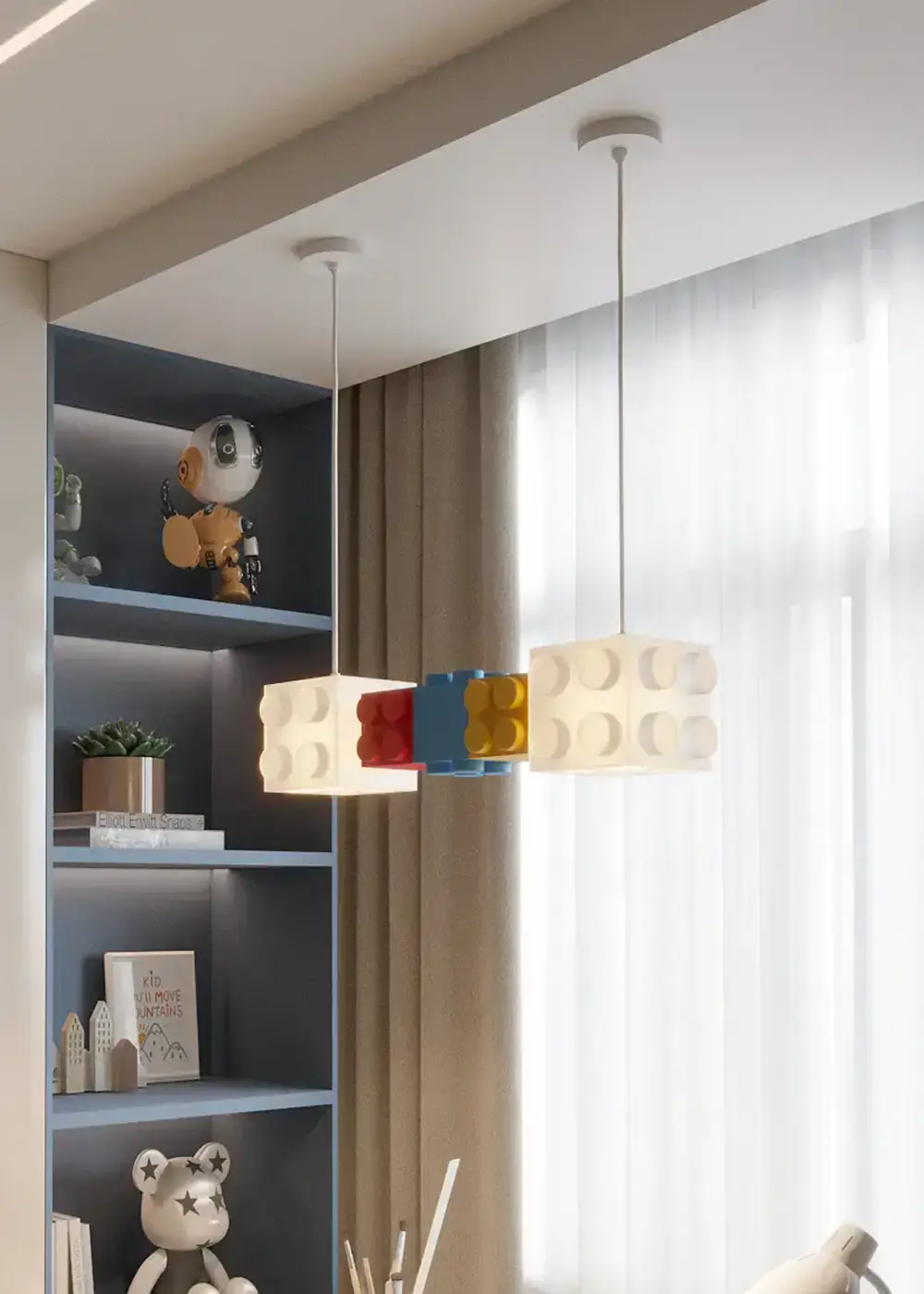 Yatay düzlemde konumlanan blok yapısı sayesinde klasik sarkıtlardan ayrılır; mekânda daha geniş bir alanı aydınlatırken aynı zamanda dekoratif bir odak noktası oluşturur. Özellikle yeni doğan bebek odası, çocuk odası ve oyun alanları için hem estetik hem de işlevsel bir çözüm sunar.