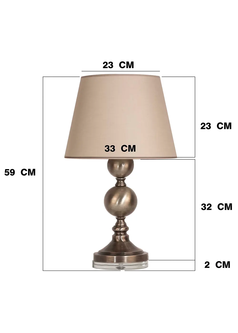 Klasik formlardan ilham alan bu şık aydınlatma ürünü, antik bronz tonlu metal gövdesi ve krem kumaş şapkasıyla yaşam alanlarına sıcak ve dengeli bir atmosfer kazandırır. Küre detaylı tasarımı ve güçlü taban formu sayesinde hem dekoratif hem fonksiyonel bir masa lambası olarak öne çıkar.