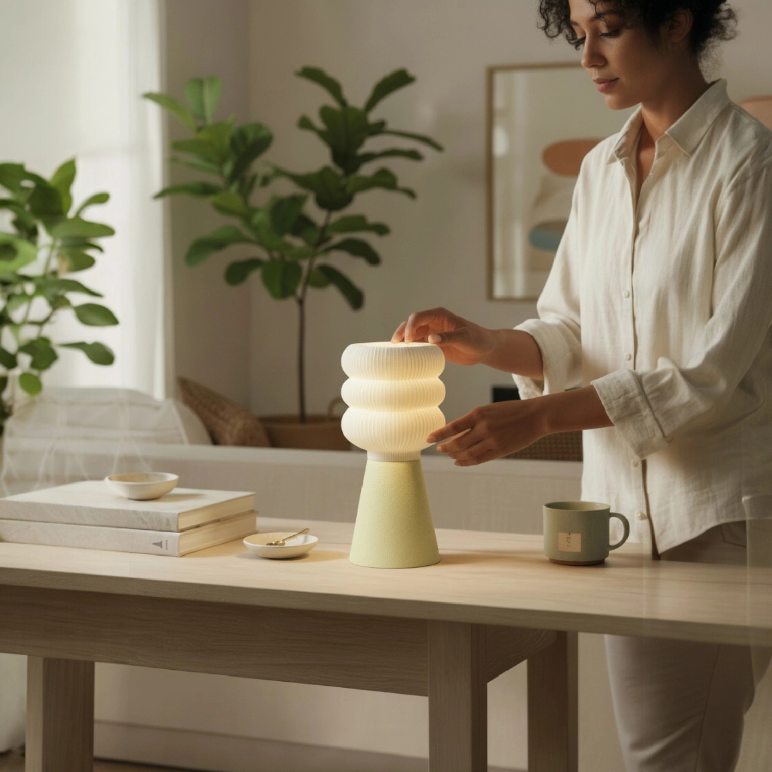 Hafif, dayanıklı ve doğa dostu malzemelerle üretilmiş minimal abajur. Ampul hediyesi ile!