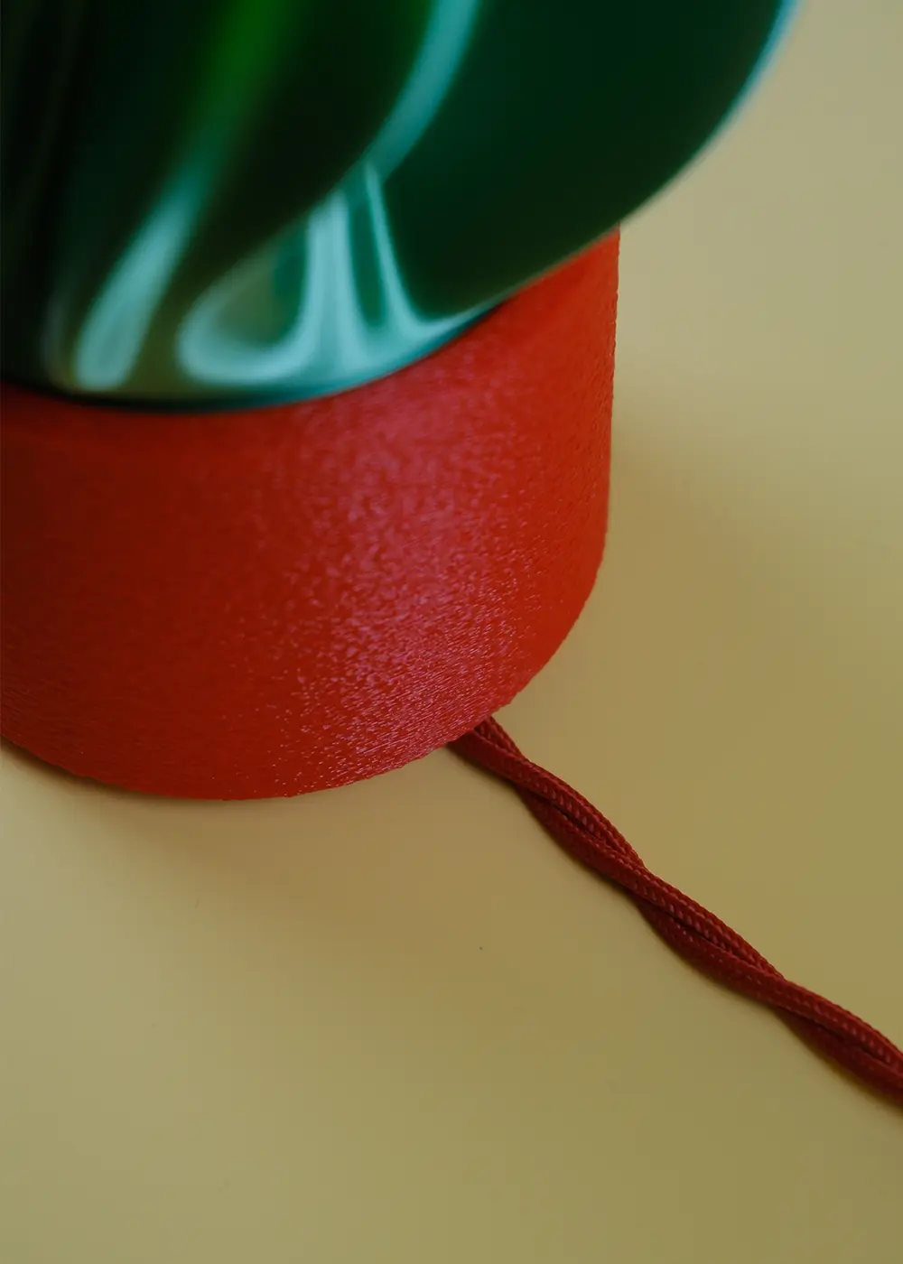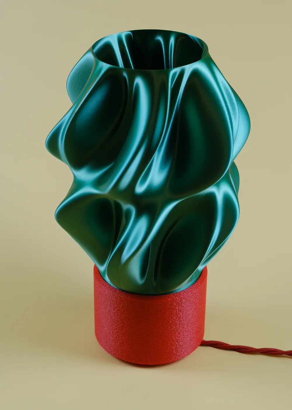 Akışkan formu ve çarpıcı renk kontrastıyla tasarlanan Fluid Emerald / Crimson masa lambası, ışığı yalnızca aydınlatan bir unsur olarak değil, mekânın kimliğini belirleyen bir tasarım objesi olarak konumlanır. Zümrüt yeşili gövde ile kırmızı kaidenin güçlü birlikteliği, modern iç mekânlarda dikkat çekici bir odak noktası oluşturur.