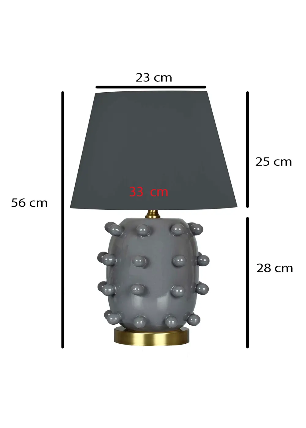 Gri Roma Seramik Abajur, parlak sırlı el yapımı seramik gövdesi ve antrasit kumaş şapkasıyla modern ve sofistike bir görünüm sunar. Yuvarlak kabartmalı yüzey detayları tasarıma heykelsi bir karakter kazandırırken, gri tonun nötr yapısı mekânda dengeli ve zamansız bir estetik oluşturur.