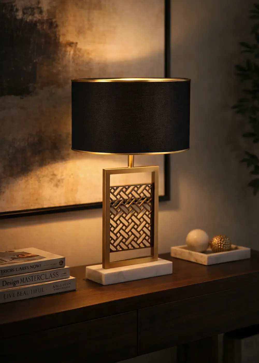 İstanbul’un mimari estetiğinden ilham alan Hazeran Abajur, geometrik desenli metal paneli ve zarif pirinç çerçevesi ile modern dekorasyona karakter kazandıran özel bir tasarım aydınlatmadır.