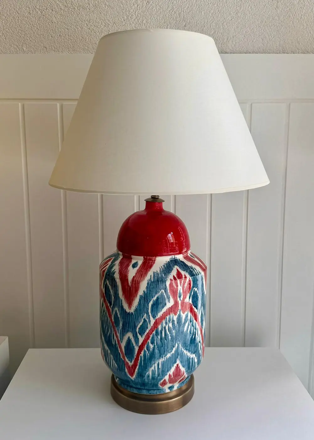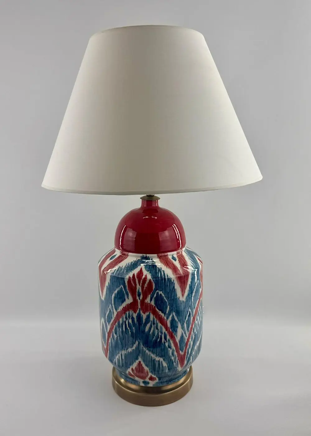 Geleneksel desenlerin modern bir yorumla yeniden hayat bulduğu Hürrem Abajur, yaşam alanlarına güçlü ve zarif bir karakter kazandırır. El yapımı seramik gövdesi üzerindeki detaylı motifler, tarihsel estetikten ilham alırken, canlı renk kullanımıyla çağdaş bir duruş sergiler.