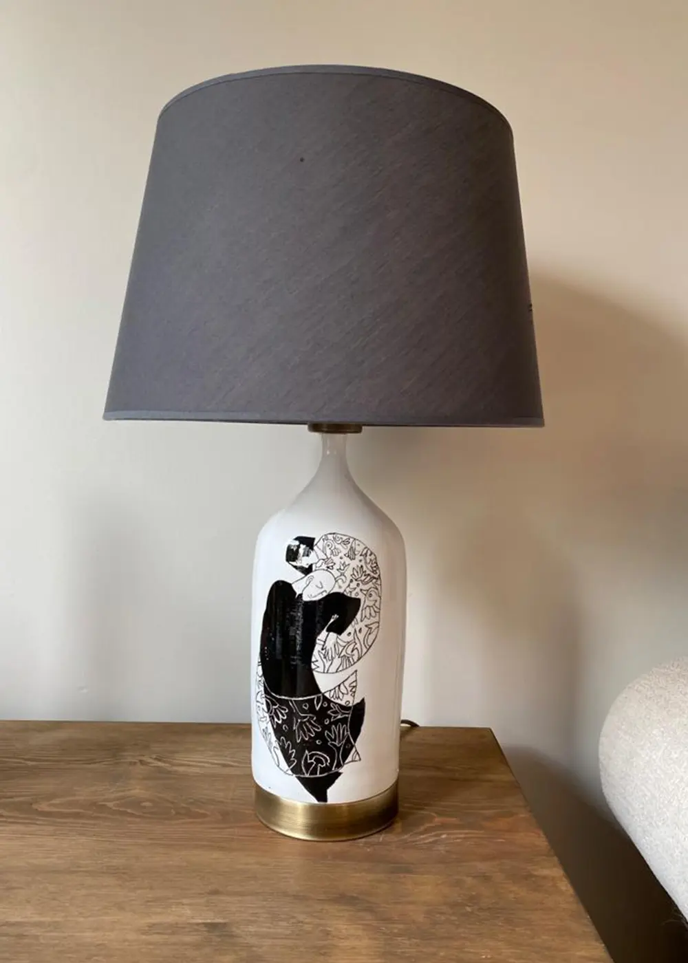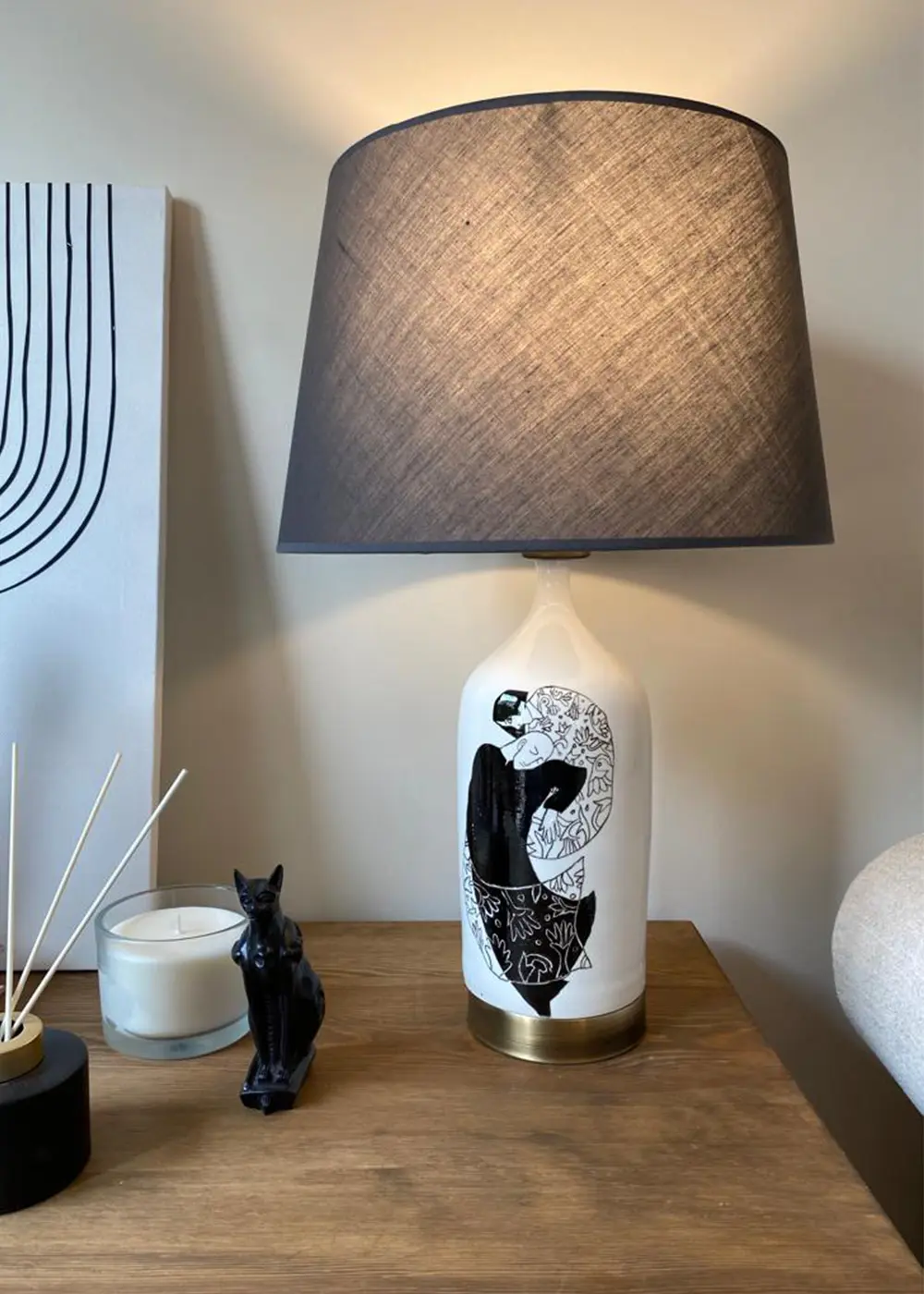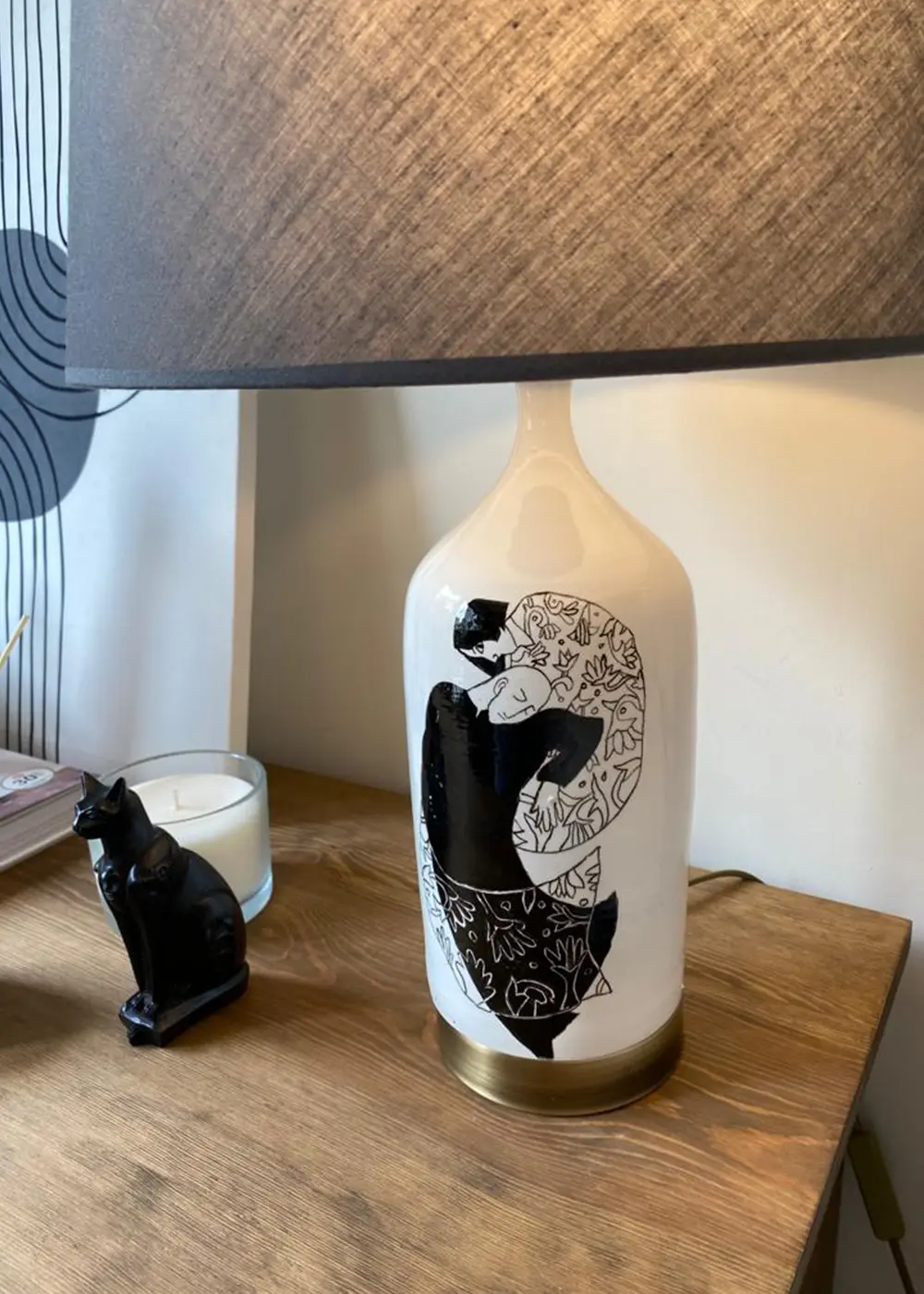 Sanatsal bir anlatımı sade bir form ile buluşturan Keyvan I Abajur, mekâna duygusal ve zarif bir karakter kazandırır. El yapımı seramik gövdesi üzerindeki figüratif illüstrasyon, tasarıma derinlik katarak ürünü yalnızca bir aydınlatma ürünü olmaktan çıkarıp anlam taşıyan bir objeye dönüştürür.