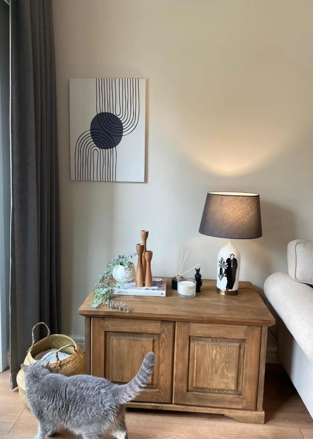 Siyah-beyaz kontrastın güçlü etkisi, minimal form ile dengelenirken; doğal tonlardaki şapkası ışığı yumuşatarak ortama sakin ve huzurlu bir ambiyans yayar. Zamansız tasarım anlayışı sayesinde farklı dekorasyon stilleriyle kolayca uyum sağlar.