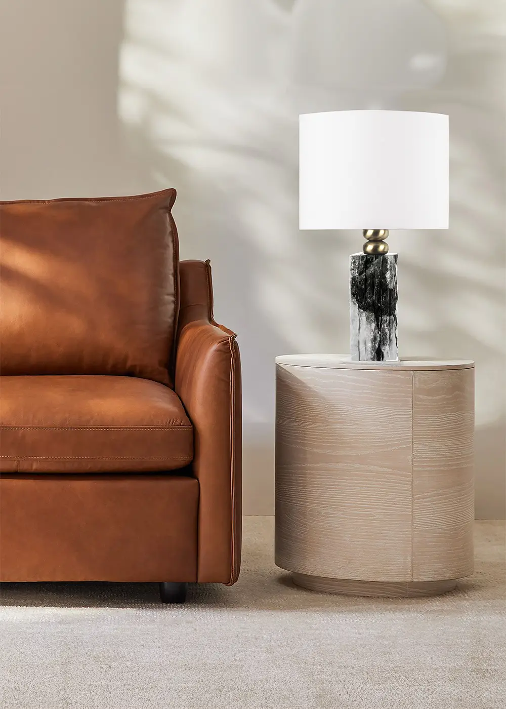 Doğal malzemesi, dengeli oranları ve zamansız tasarım diliyle Kiev masa lambası; modern, klasik ya da minimal dekorasyon stillerine uyum sağlayarak mekânın karakterini güçlendirir.