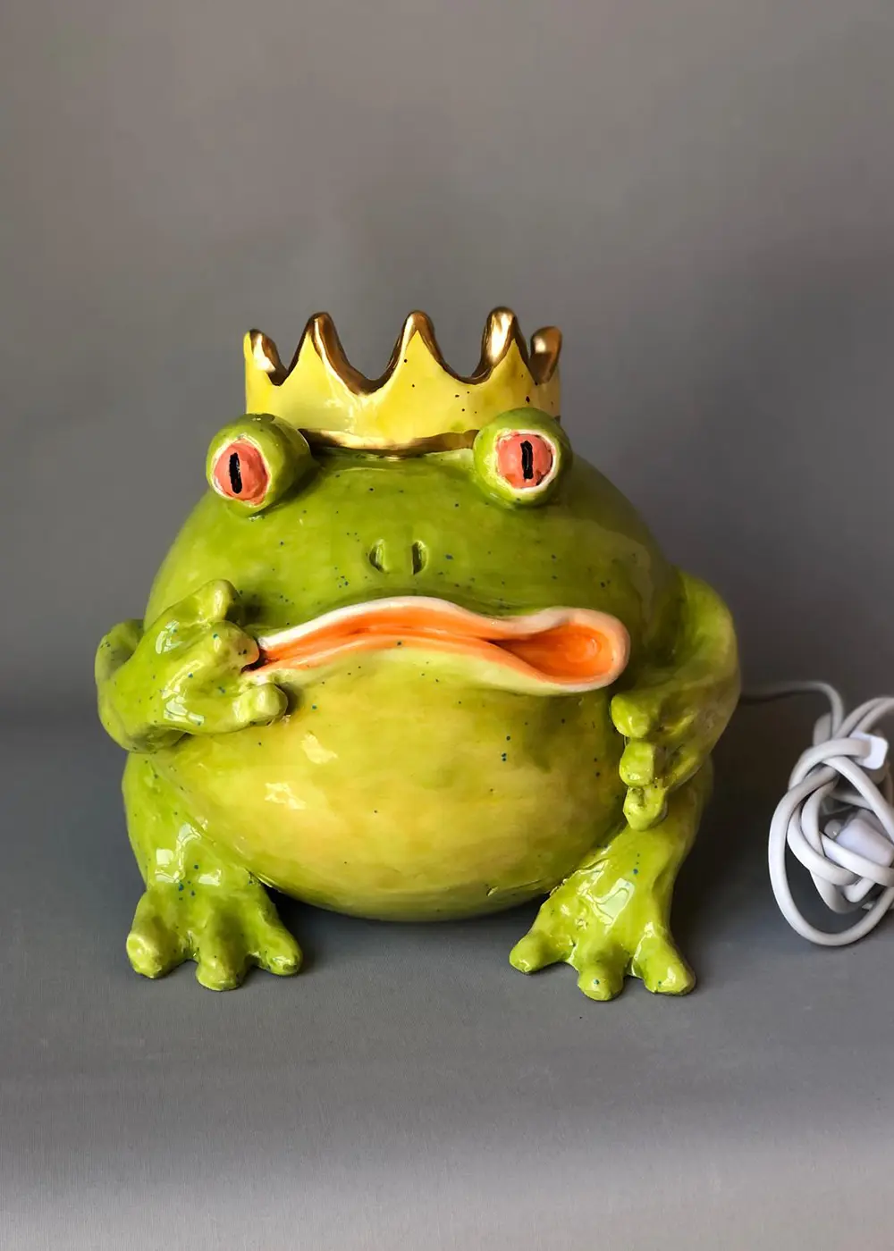 Mizah, tasarım ve el işçiliğinin aynı formda buluştuğu bu özel aydınlatma ürünü, klasik masa lambası algısını kırarak mekâna karakter kazandırır. Kurbağa formundan ilham alan bu el yapımı seramik masa lambası, yalnızca bir ışık kaynağı değil; bulunduğu alanda dikkat çeken, hikâye yaratan bir tasarım objesidir.