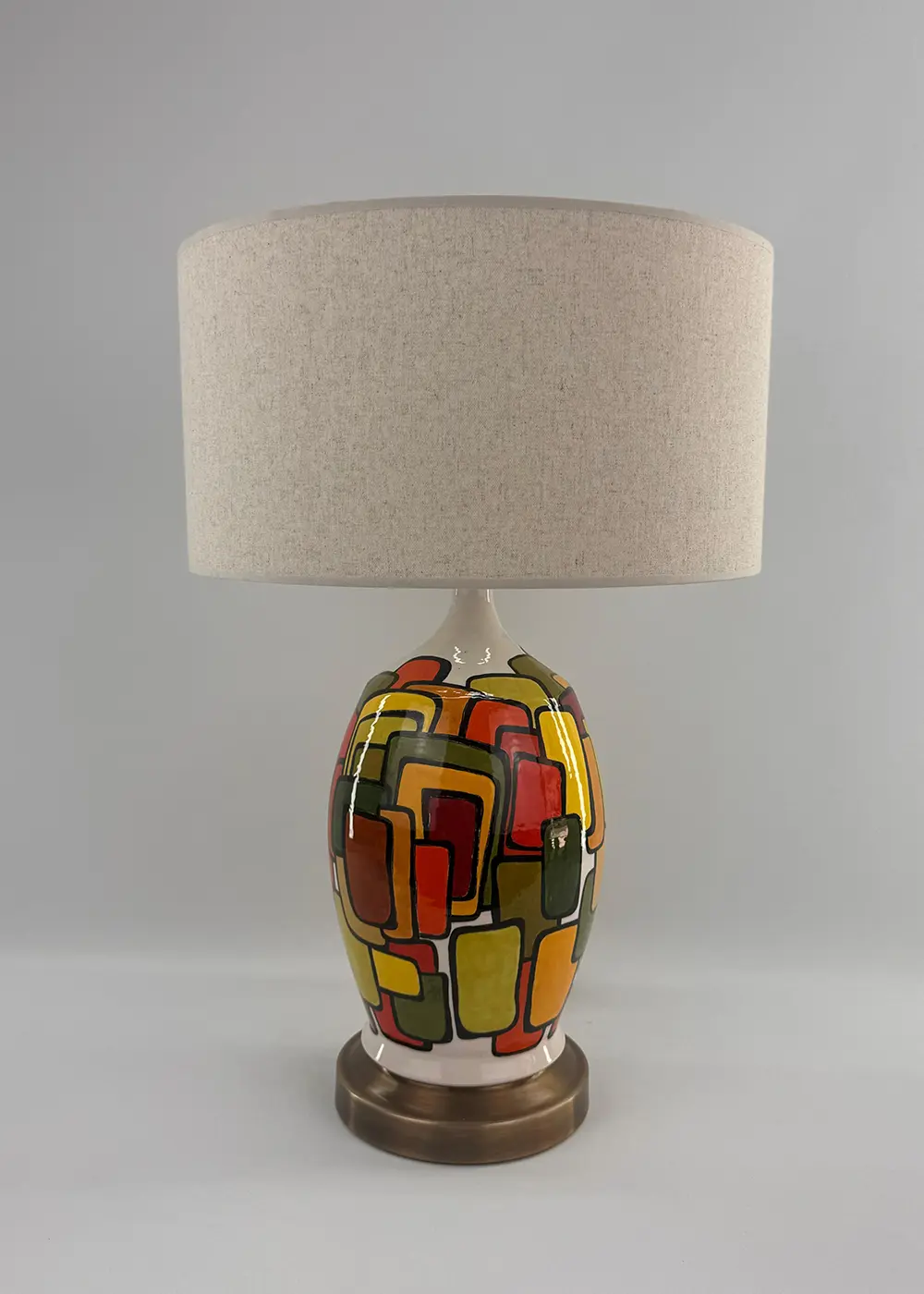 Sıcak tonların geometrik bir düzen içinde buluştuğu Layers Turuncu Abajur, yaşam alanlarına enerjik ama dengeli bir karakter kazandırır. El yapımı seramik gövdesi üzerindeki katmanlı form dili, turuncu ve toprak tonlarıyla birleşerek mekâna derinlik ve hareket katar.