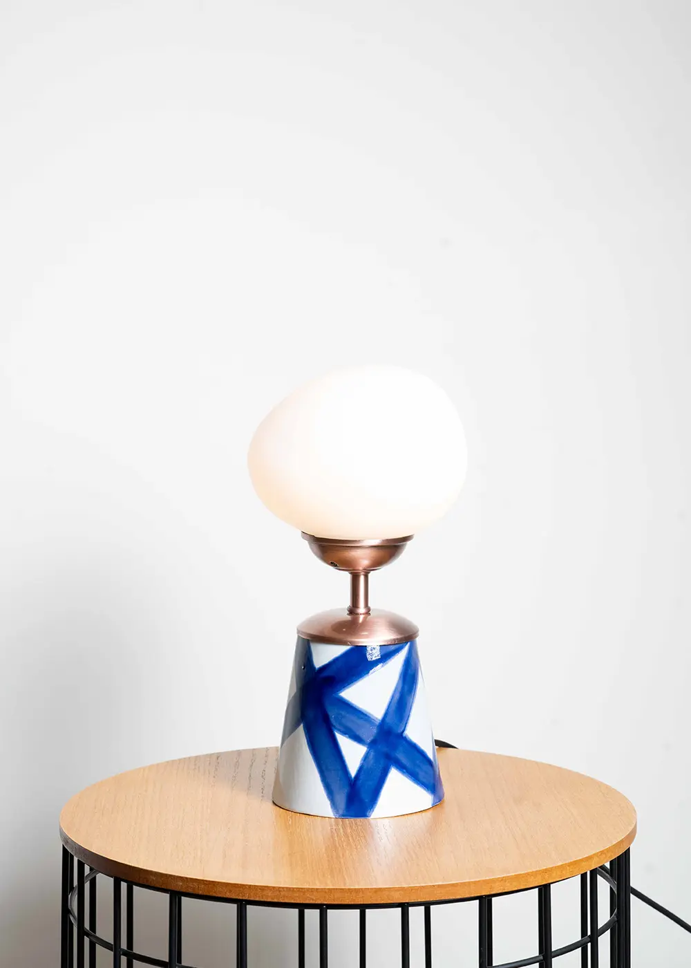 Muddy and More tarafından tasarlanan Lines Masa Lambası, el yapımı seramik gövdesi ve karakterli formuyla dekoratif aydınlatmayı sanatsal bir objeye dönüştüren özel bir tasarım aydınlatma ürünüdür. Seramik yüzey üzerindeki özgür mavi çizgi dokusu, her üründe benzersiz bir görsel karakter oluştururken; bakır eskitme duy aparatı ve amorf buz beyaz glob camı ile dengeli ve sıcak bir ışık atmosferi sunar.