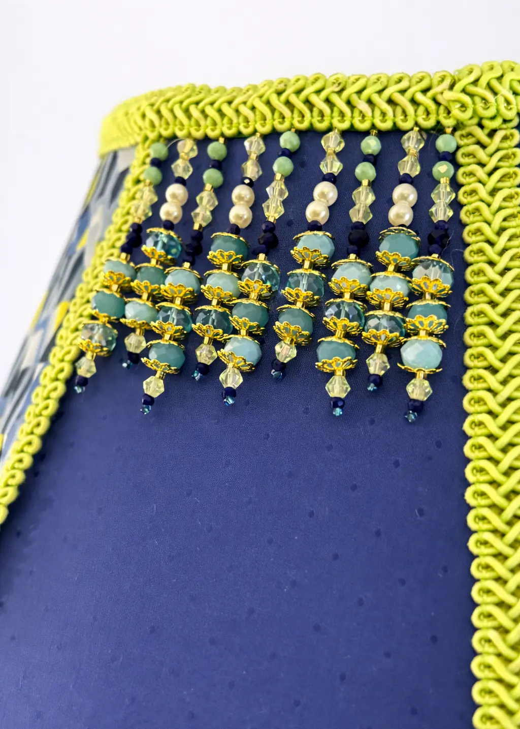 Başlık çevresinde gold sırma saçak, alt kısımda altın rengi ve iki farklı yeşil tonda büyük püsküller, üst kısımda ise gold küçük püsküller yer alır. İç astarda açık yeşil pamuklu kumaş kullanılmıştır.
