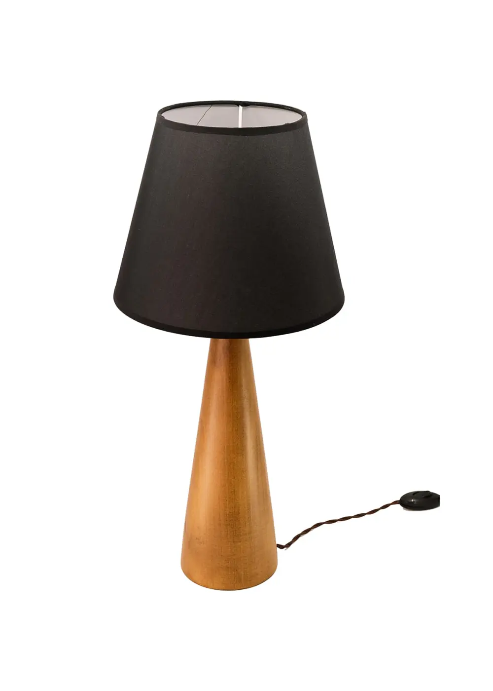 Mill Ahşap Abajur’un siyah başlıklı versiyonu, masif ahşabın sıcak dokusunu güçlü bir kontrastla buluşturan zamansız bir tasarım abajur modelidir. Konik formdaki el yapımı ahşap gövde ile siyah kumaş başlık arasındaki denge, bulunduğu mekâna hem karakter hem de derinlik kazandırır.