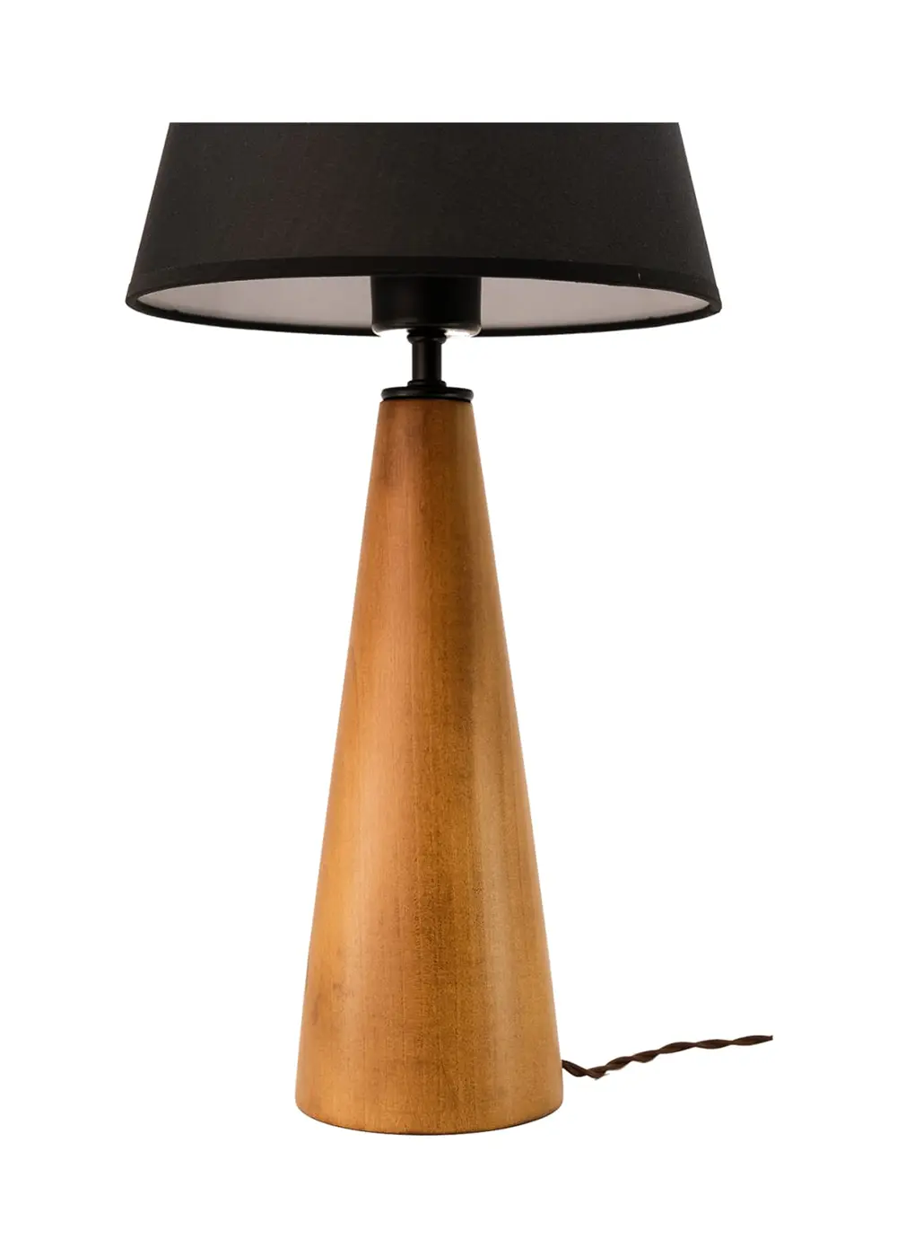 Doğal ahşap gövde ile siyahın keskinliği birleştiğinde, hem sıcak hem modern bir denge oluşur. Bu da ürünü farklı dekorasyon stillerine uyum sağlayan zamansız bir tasarım abajur haline getirir.
