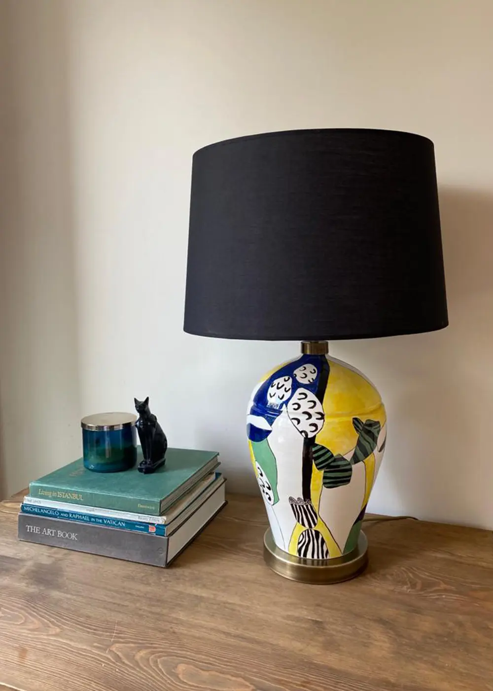 Sanatsal figüratif anlatımı ve dengeli renk kullanımıyla öne çıkan Mirella Abajur, yaşam alanlarına karakterli ve sofistike bir dokunuş kazandırır. El yapımı seramik gövdesi üzerindeki modern illüstrasyon, tasarıma güçlü bir ifade katarken ürünü yalnızca bir aydınlatma ürünü olmaktan çıkarıp dekoratif bir sanat objesine dönüştürür.