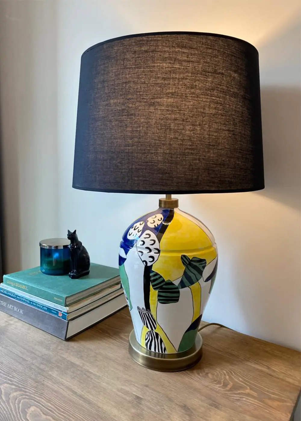 Koyu tonlardaki şapkası, canlı ve kontrastlı gövdeyi dengelerken ışığı yumuşatarak ortama sıcak ve huzurlu bir ambiyans yayar. Modern, eklektik ve sanatsal dekorasyon anlayışına sahip mekânlarda güçlü bir tamamlayıcı olarak konumlanır.