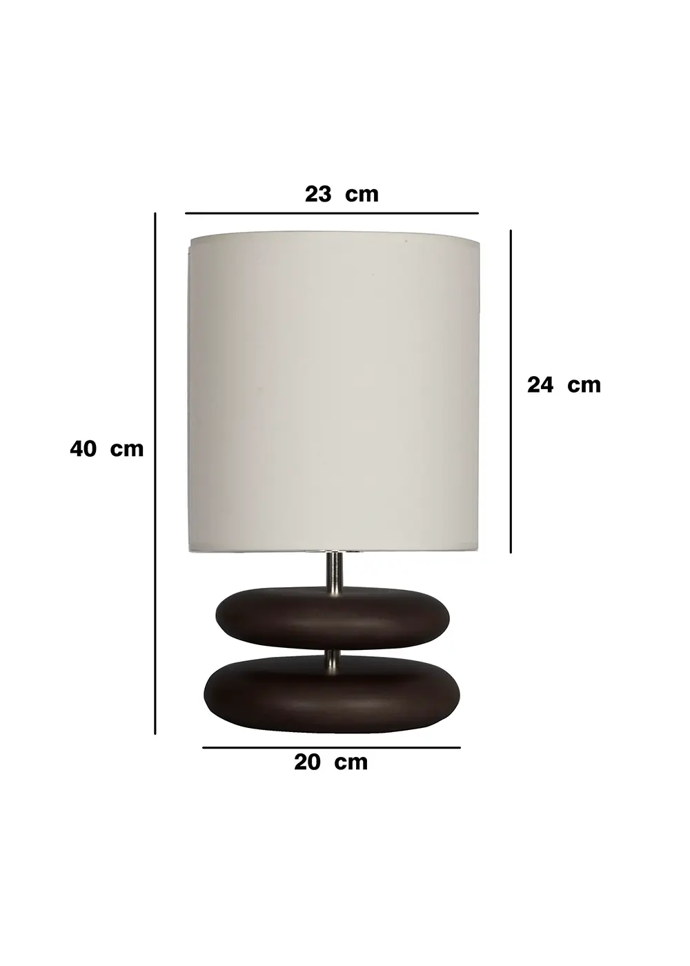 Gövde, koyu ceviz tonunda cilalanmış el yapımı ahşaptan üretilmiştir. Çift halkalı form, tasarıma heykelsi bir denge ve güçlü bir siluet kazandırır.
