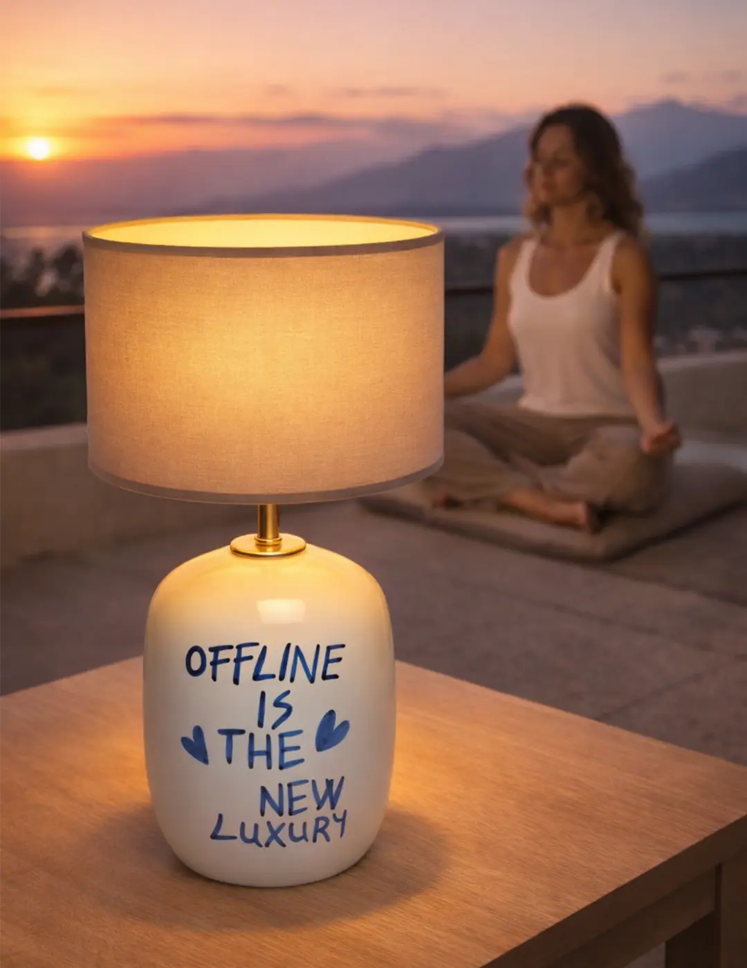“Offline is the new luxury” mesajıyla sade ama güçlü bir duruş sergileyen bu el yapımı seramik abajur, yaşam alanlarına sadece ışık değil, anlam da katıyor. Dijital dünyadan bilinçli bir uzaklaşmayı simgeleyen tasarımıyla; salon, yatak odası, çalışma odası, meditasyon köşesi ve teras gibi alanlar için hem dekoratif hem de fonksiyonel bir aydınlatma çözümüdür.