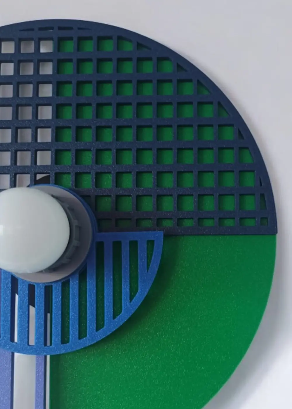 Lambayı oluşturan parçalar ( 4 adet) 3D yazıcı ile bitkisel bazlı, doğa dostu biyopolimer malzemelerden üretilmiştir.