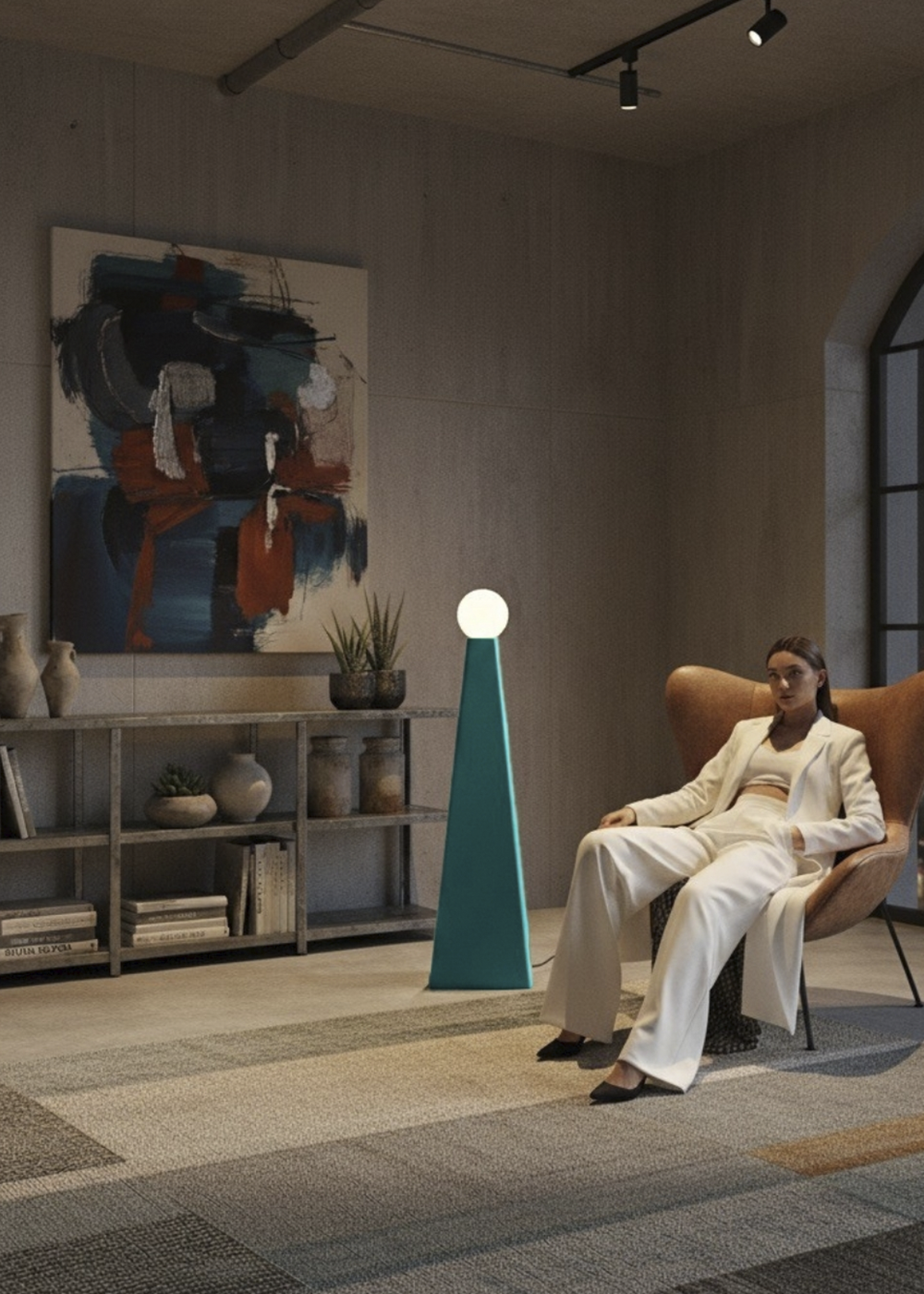 ORB, gökyüzündeki ayın ya da yıldızın yeryüzüne inmiş hali gibi tasarlandı. Geometrik, köşeli ve sağlam gövdesi (yeşil prizmatik form), doğayı ve toprağı simgelerken; tepesindeki yuvarlak küre ışık kaynağı gökyüzünü, güneşi ya da ayı temsil ediyor. ORB’un hikayesi aslında gündelik yaşamda da bir metafor: Kaosun ortasında sade bir ışık noktası. Karanlıkta hem yön gösteriyor hem de huzur veriyor.