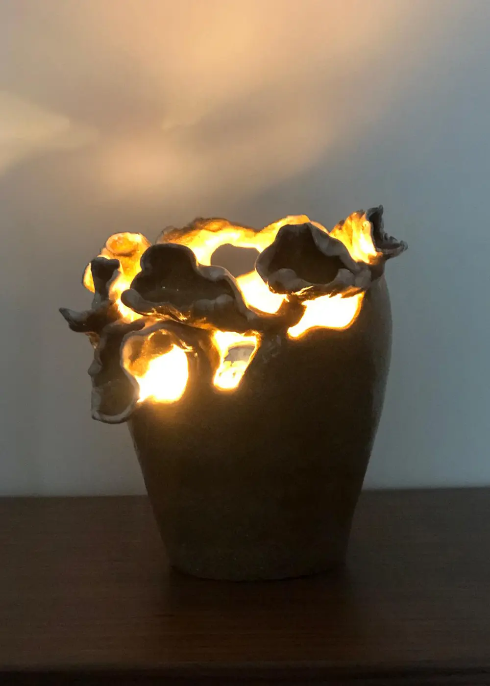 Yumuşak ışığı ve formunun yarattığı gölge oyunları sayesinde bulunduğu ortama sakinlik, derinlik ve doğal bir ritim kazandırır.