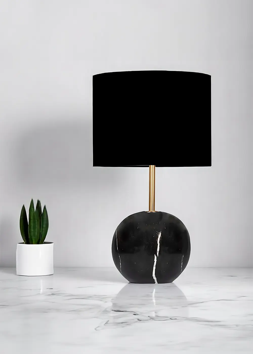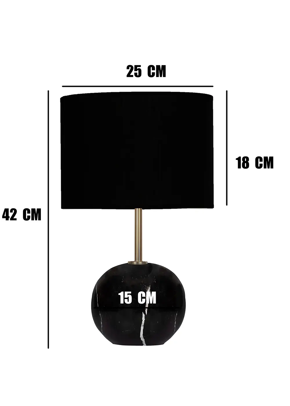 Point Mermer Görünümlü Siyah Abajur – Siyah Şapkalı