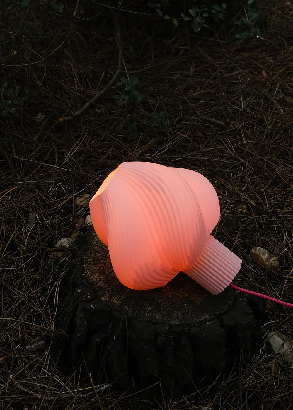 Kıvrımlı ve dondurmayı andıran formuyla tasarlanan POP / Pembe masa lambası, mekâna neşeli ama zarif bir karakter kazandırır. Yumuşak spiral dokusu sayesinde ışık yüzey boyunca nazikçe yayılır ve bulunduğu ortamda sıcak, tatlı bir atmosfer oluşturur.