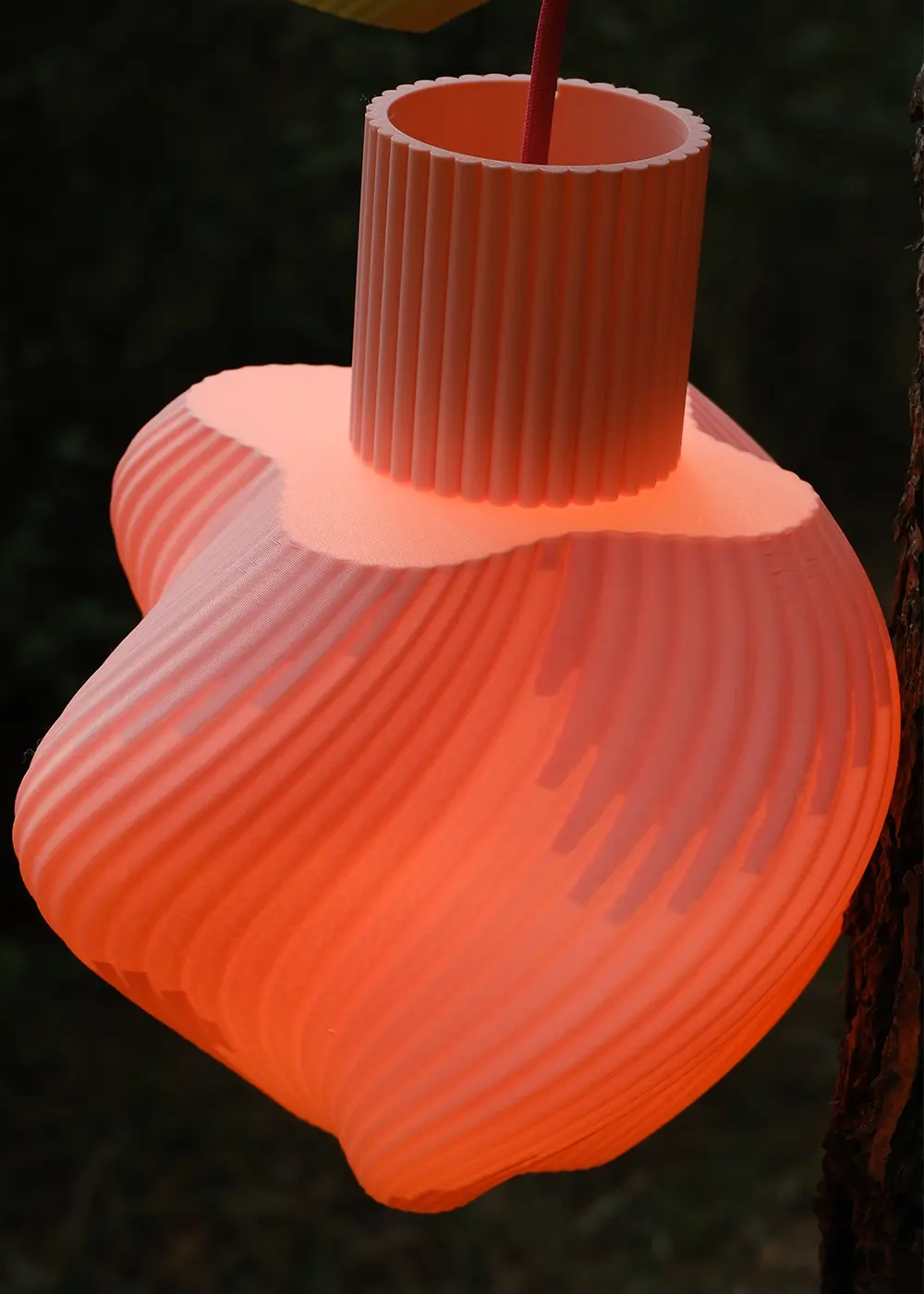 POP serisi, 3D yazıcı teknolojisi kullanılarak bitkisel bazlı biyopolimerlerden üretilmiştir. Katmanlı üretim süreci, yüzeyde kendine özgü bir ritim ve derinlik oluşturarak ışığın form üzerinde akmasını sağlar.