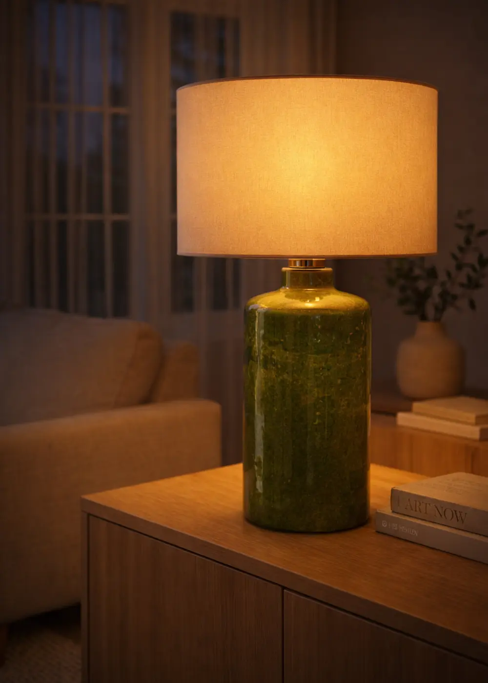 Rodrigues Seramik Abajur – Doğal Yeşil Tonuyla Modern ve Sıcak Aydınlatma