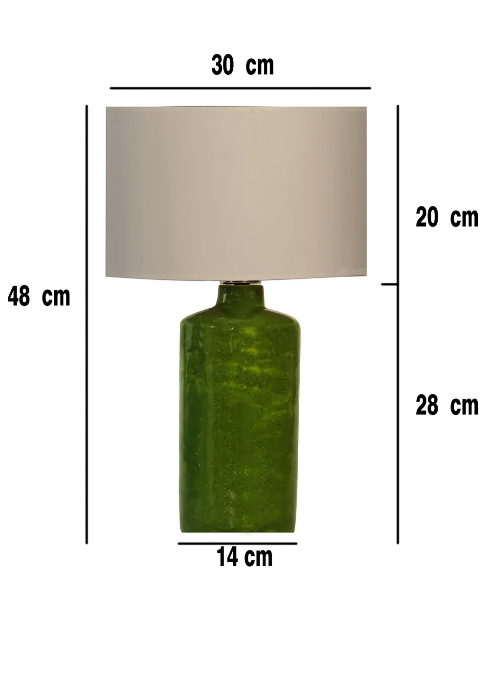 Modern, minimal, doğal veya bohem dekorasyon stilleriyle kolayca uyum sağlar. Yeşil seramik gövdesi mekâna canlılık katarken, kumaş abajur ortamı yumuşatır ve huzurlu bir atmosfer oluşturur.