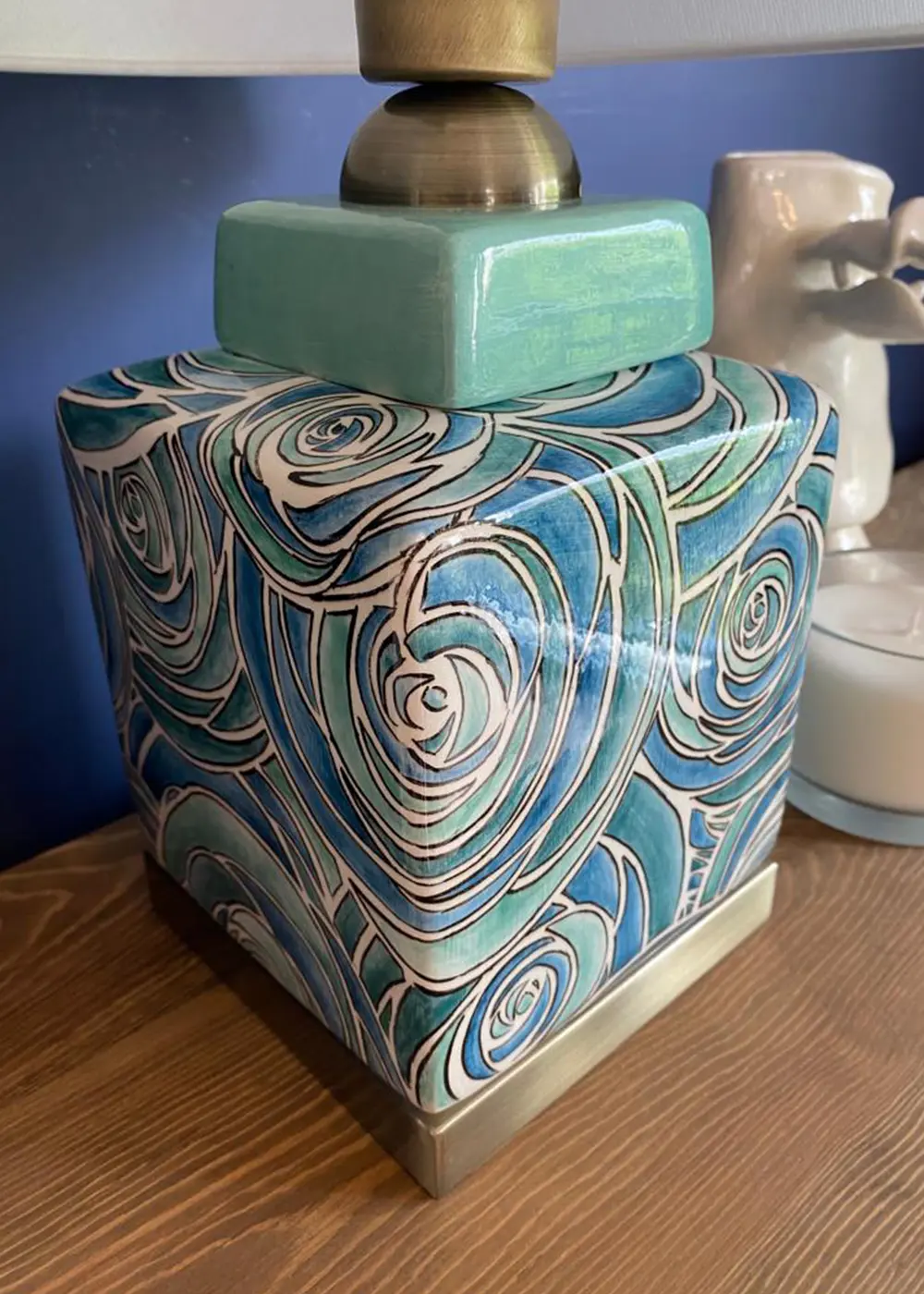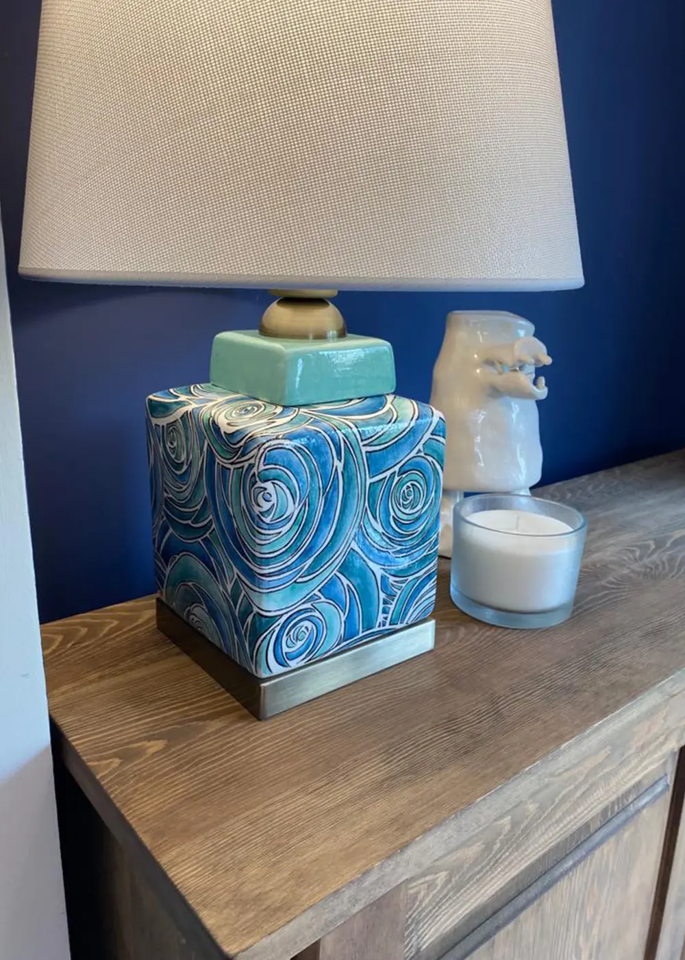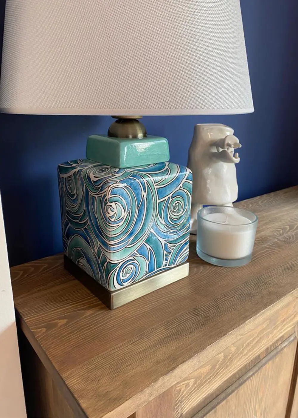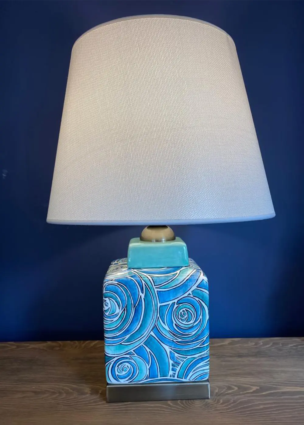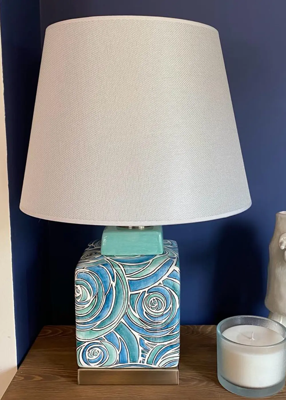 Doğanın akışkan form dilinden ilham alan Roses Abajur, seramik yüzeyindeki zarif desenleri ve mavi tonlarının derinliğiyle yaşam alanlarına sakin ama etkileyici bir atmosfer kazandırır. El yapımı gövdesi üzerindeki spiral ve organik geçişler, suyun hareketini andıran bir ritim yaratır ve mekâna görsel bir akış katar.