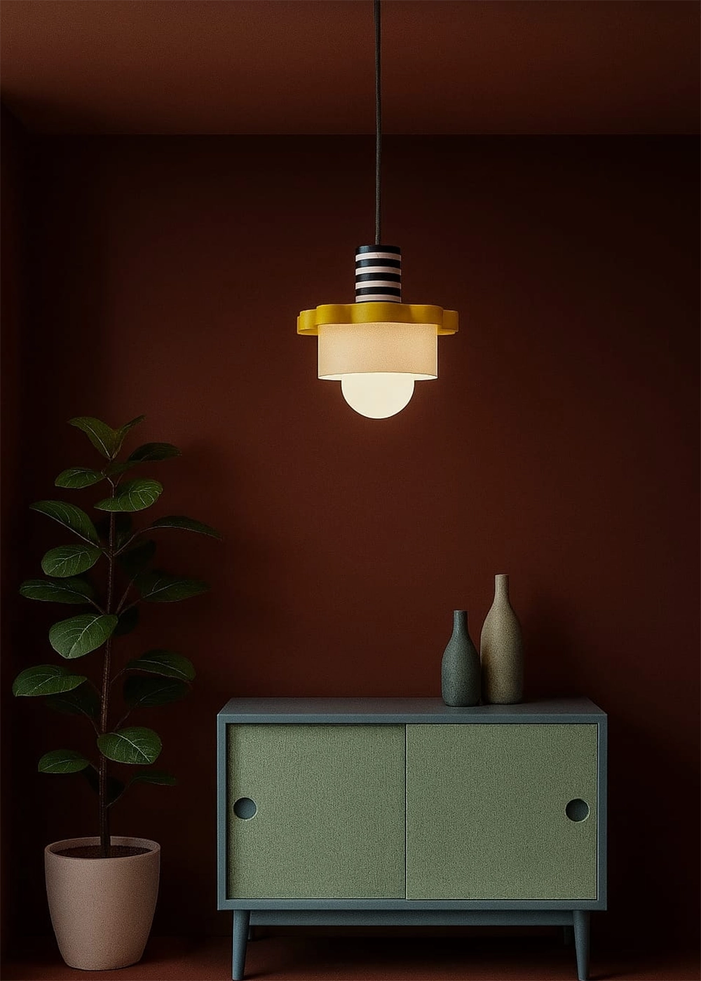 Lambayı oluşturan parçalar  3D yazıcı ile bitkisel bazlı, doğa dostu biyopolimer malzemelerden üretilmiştir.