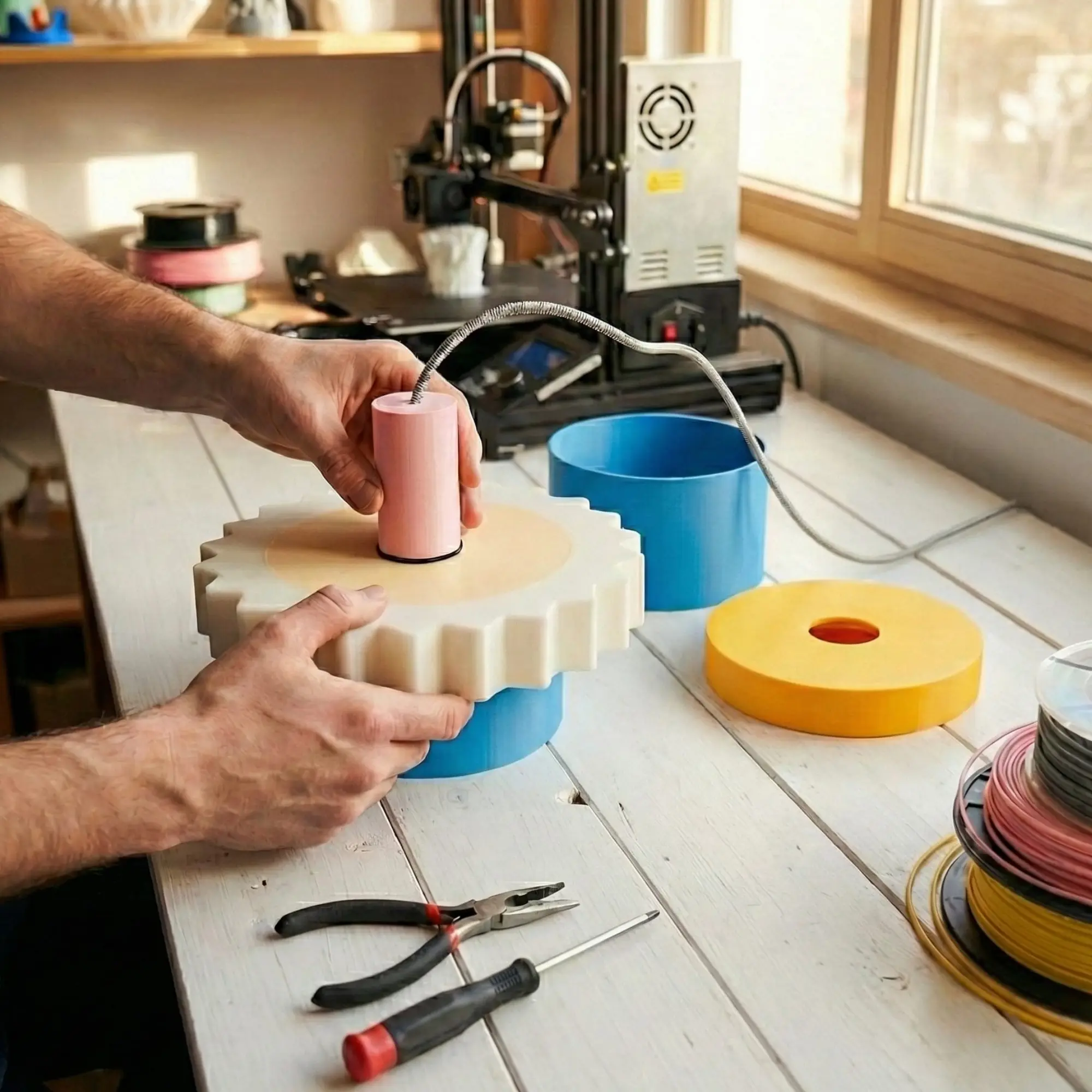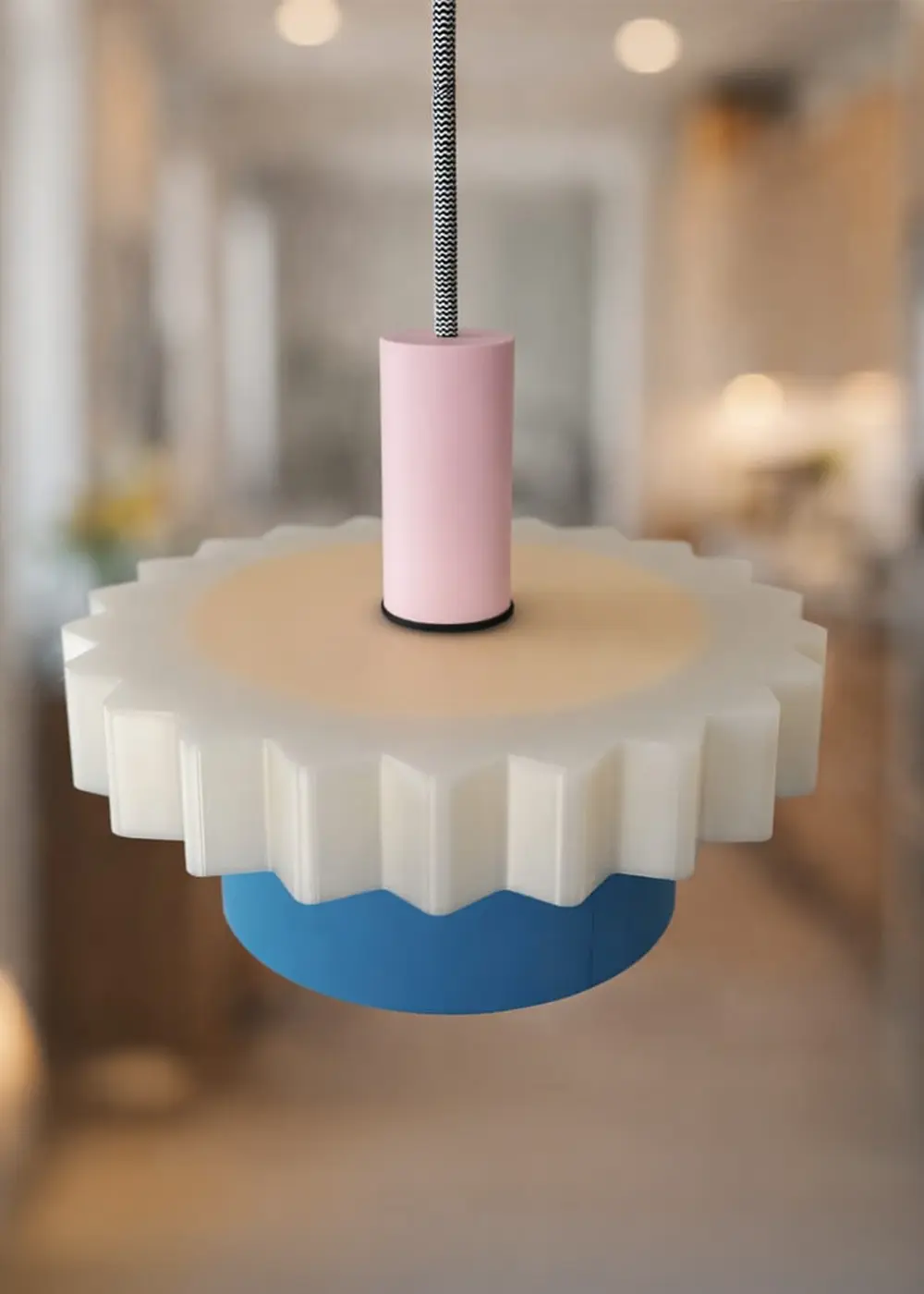 Lambayı oluşturan parçalar  3D yazıcı ile bitkisel bazlı, doğa dostu biyopolimer malzemelerden üretilmiştir.