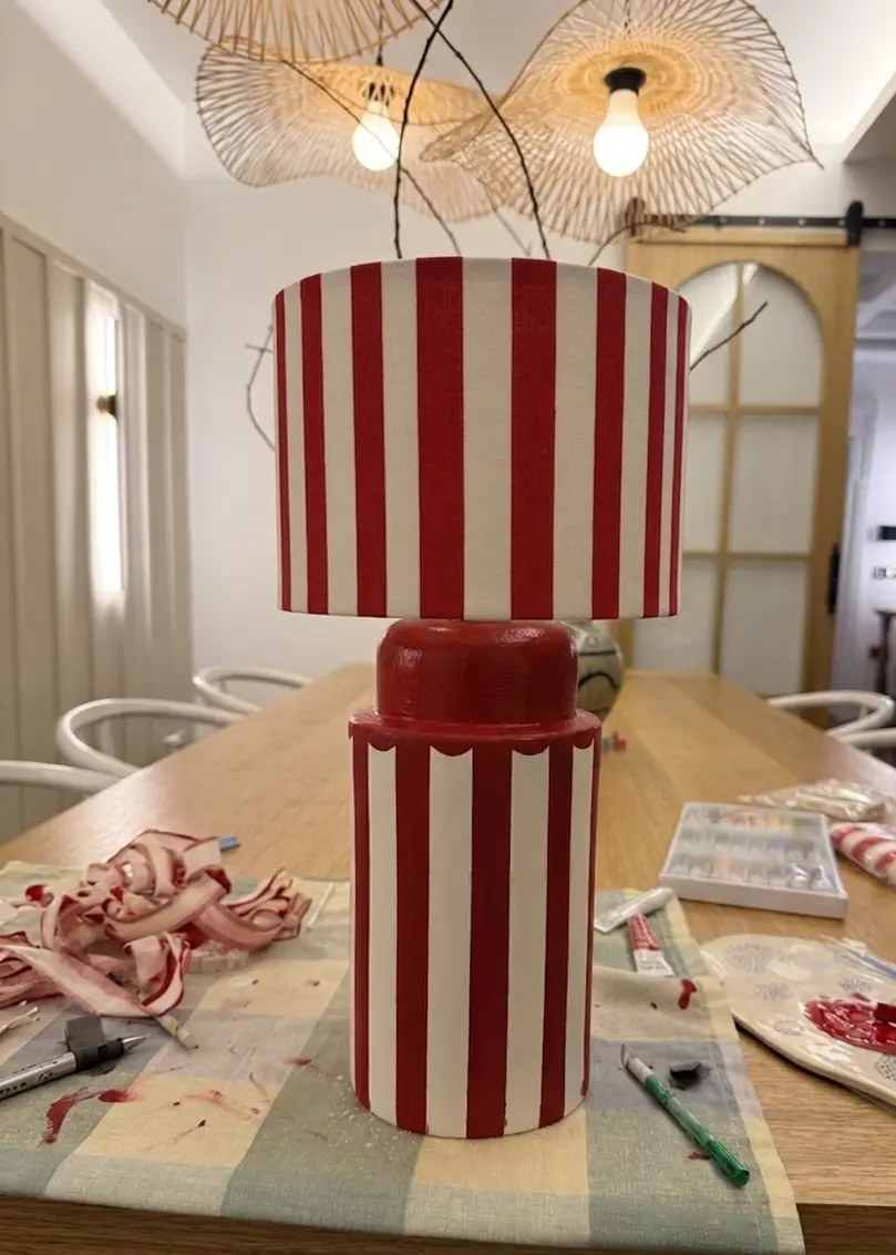 Scarlet abajur, güçlü renk kontrastı ve minimal formu sayesinde bulunduğu her ortamda dikkat çeken bir odak noktası oluşturur. Kırmızı ve krem tonlarının dengesi, mekâna hem sıcaklık hem de enerjik bir karakter kazandırır.