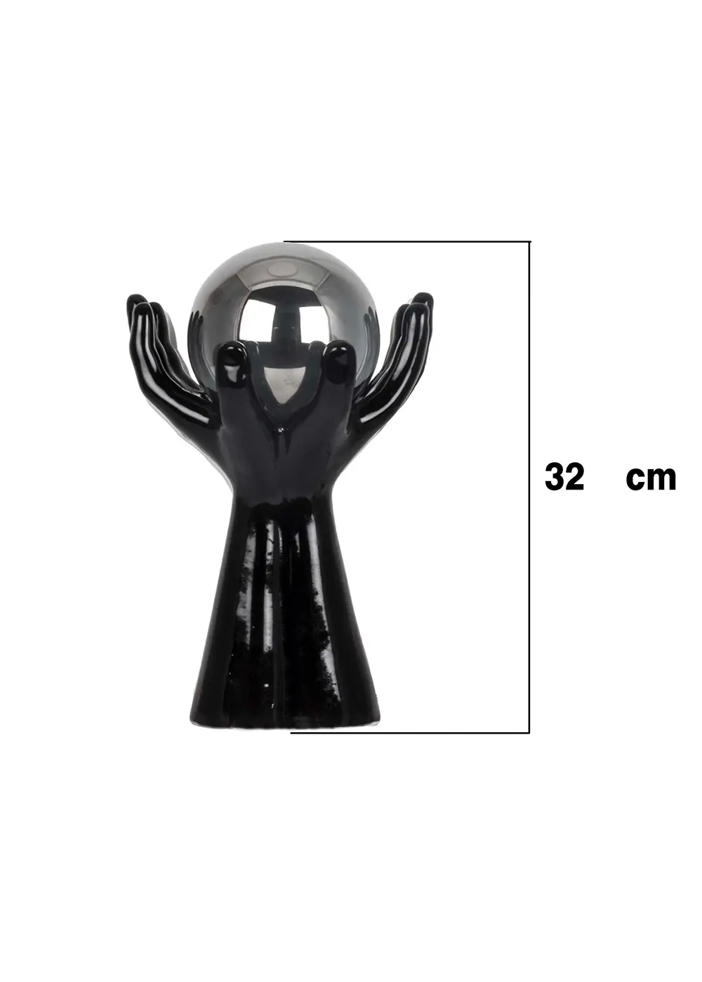 Holding the World Siyah El Formlu Masa Lambası, klasik aydınlatma anlayışının çok ötesine geçen, heykelsi formuyla mekâna kimlik kazandıran modern bir tasarım ürünüdür. Siyah gövdesi ve küresel formu sayesinde güçlü bir görsel etki yaratırken, aynı zamanda dekoratif aydınlatma işlevini zarif bir şekilde yerine getirir.