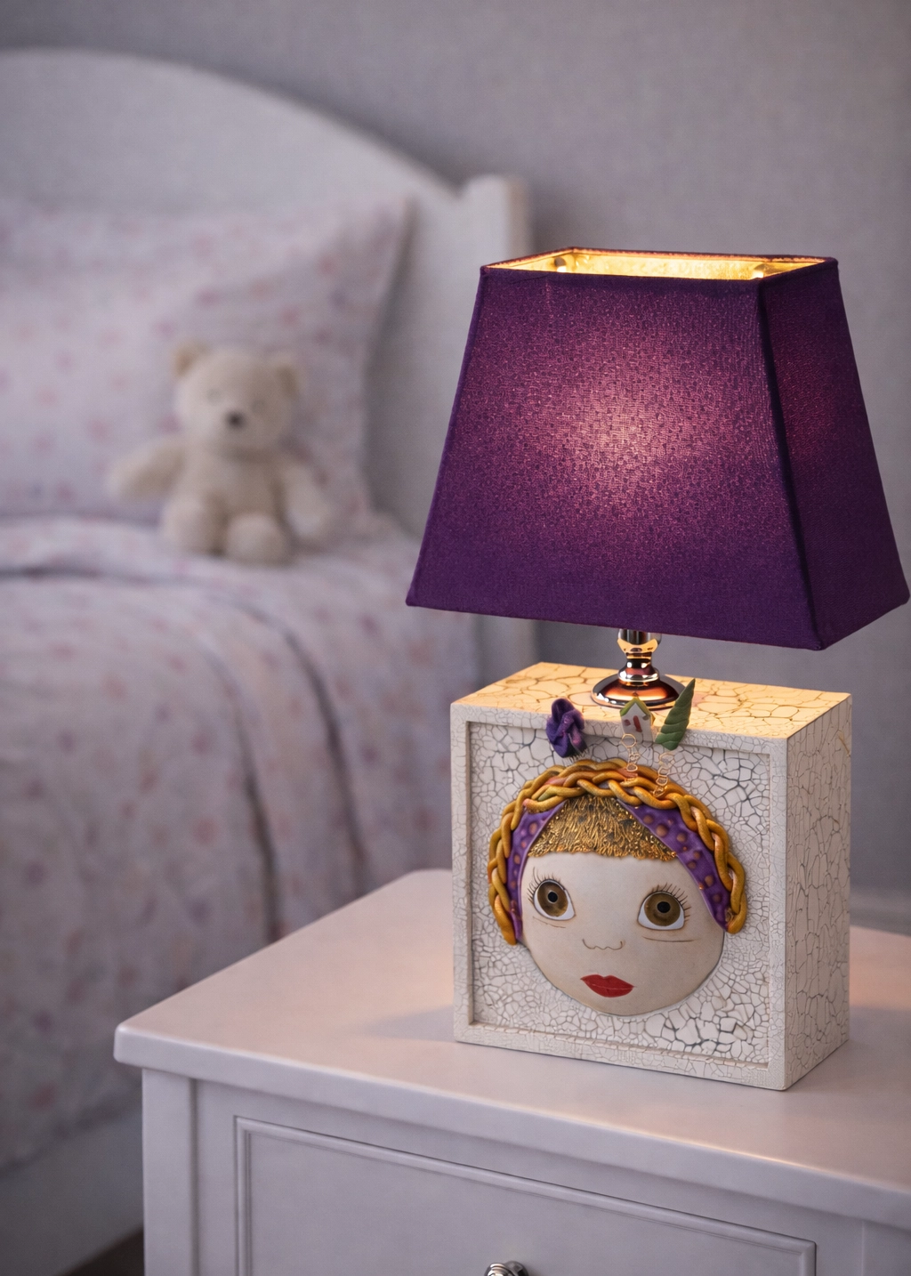 Smile Seramik El Yapımı Modern Mor Başlıklı Abajur