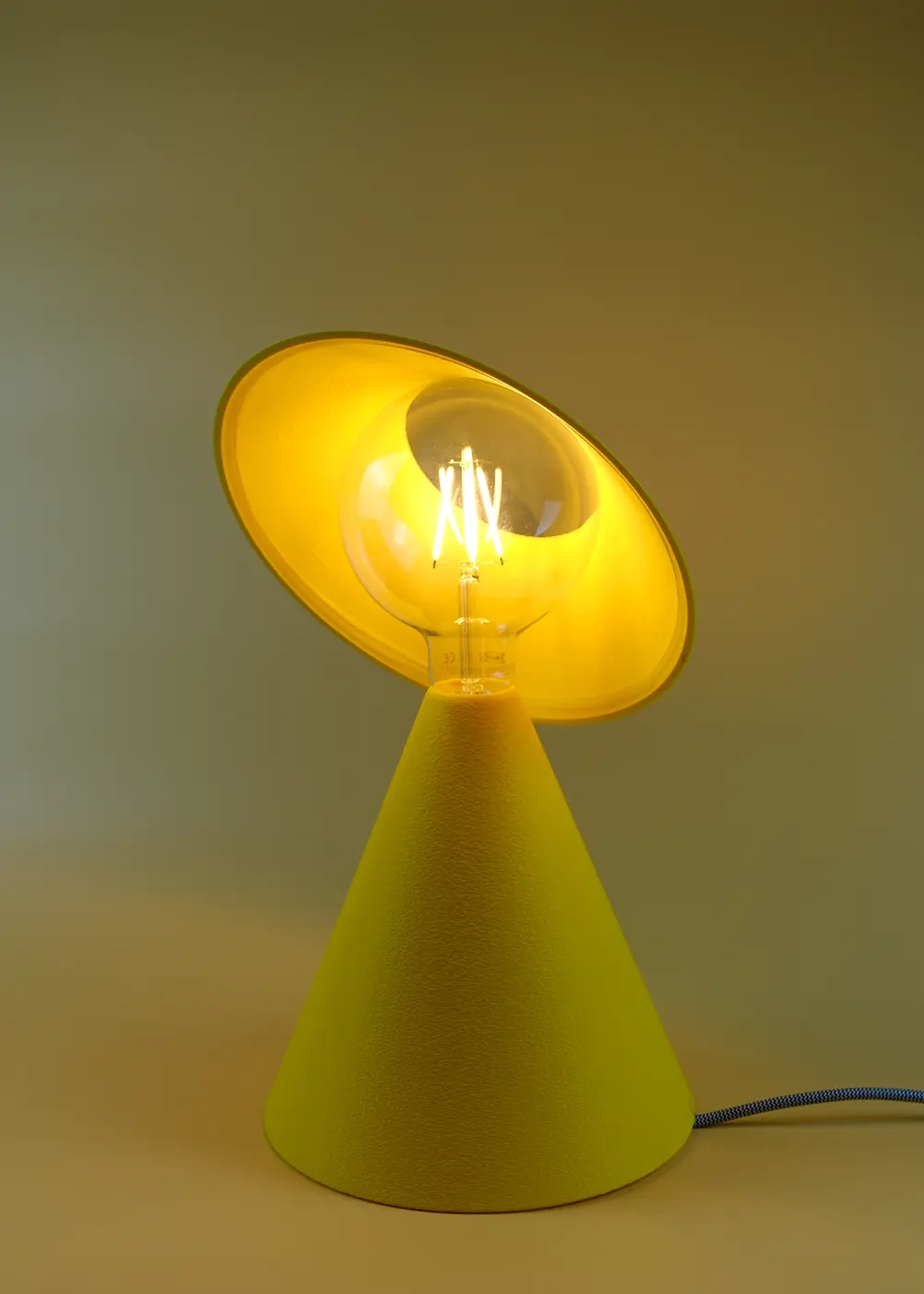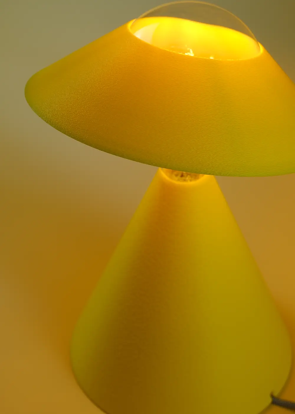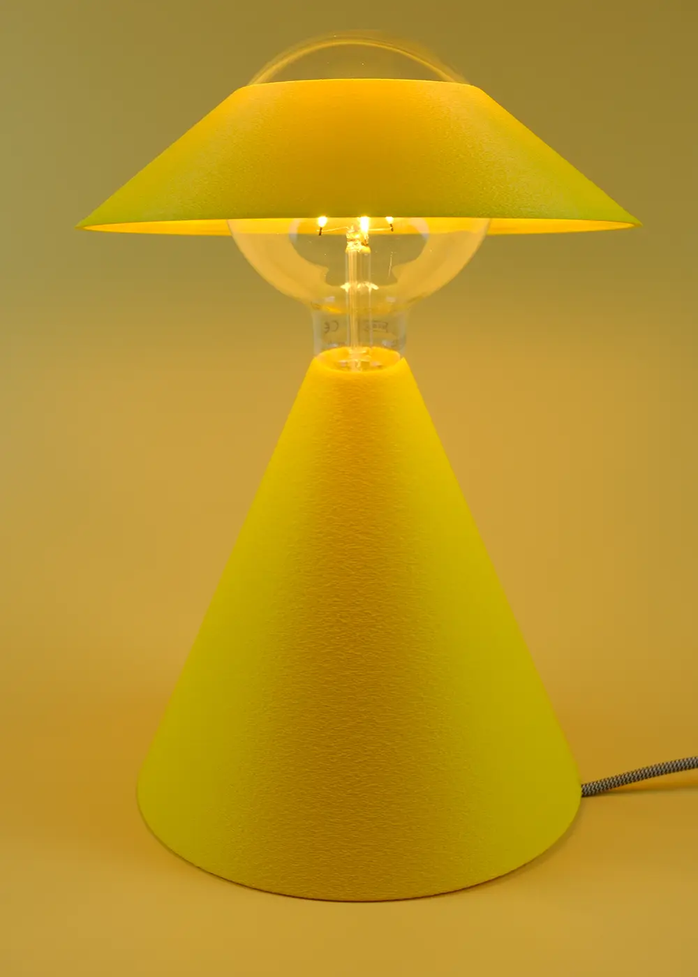 Sun Yellow rengi, gün ışığını anımsatan bir etki yaratırken amber LED ampul ile birlikte mekânda dengeli ve sıcak bir ışık deneyimi sunar. Gündüzleri modern ve heykelsi bir tasarım objesi; akşamları ise mekânın karakterini tamamlayan bir aydınlatma ürünü olarak konumlanır.