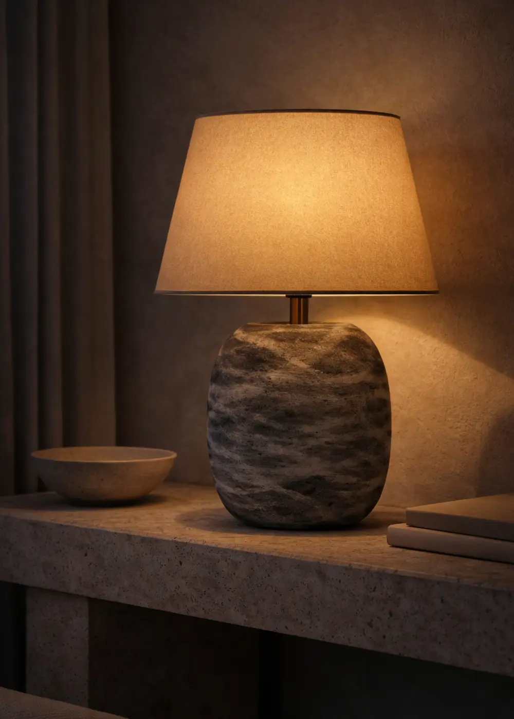 Minimal, modern, rustik ya da wabi-sabi dekorasyon stiline uyum sağlayan bu dekoratif masa lambası, hem estetik hem de fonksiyonel bir aydınlatma çözümü sunar.