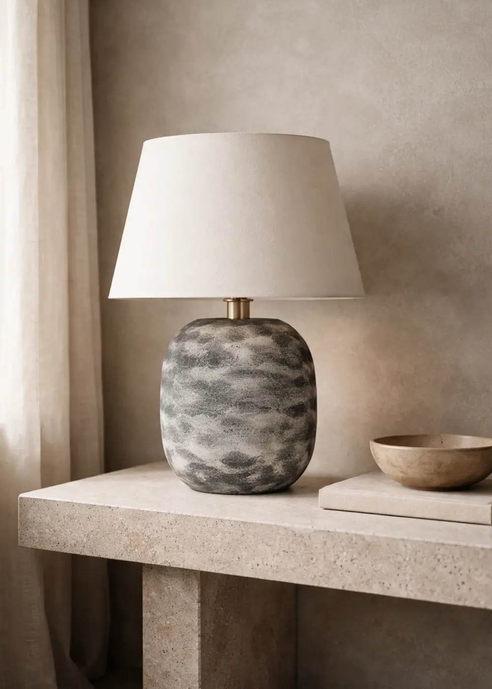 Minimal, modern, rustik ya da wabi-sabi dekorasyon stiline uyum sağlayan bu dekoratif masa lambası, hem estetik hem de fonksiyonel bir aydınlatma çözümü sunar.
