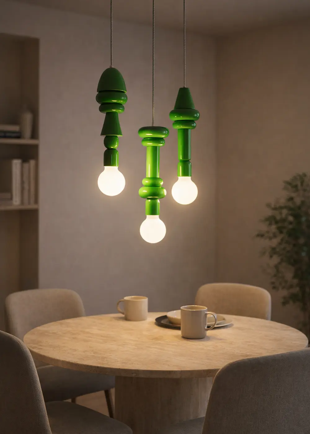 Üçlü yuvarlak dizilim formu sayesinde Turn Shade, özellikle yemek masaları, mutfak adaları, oturma alanları veya modern iç mekânlarda güçlü bir tasarım odak noktası oluşturur. Sarkıtların farklı geometrik formları, mekânda hem ritim hem de derinlik yaratarak dekorasyona dinamik bir karakter kazandırır.