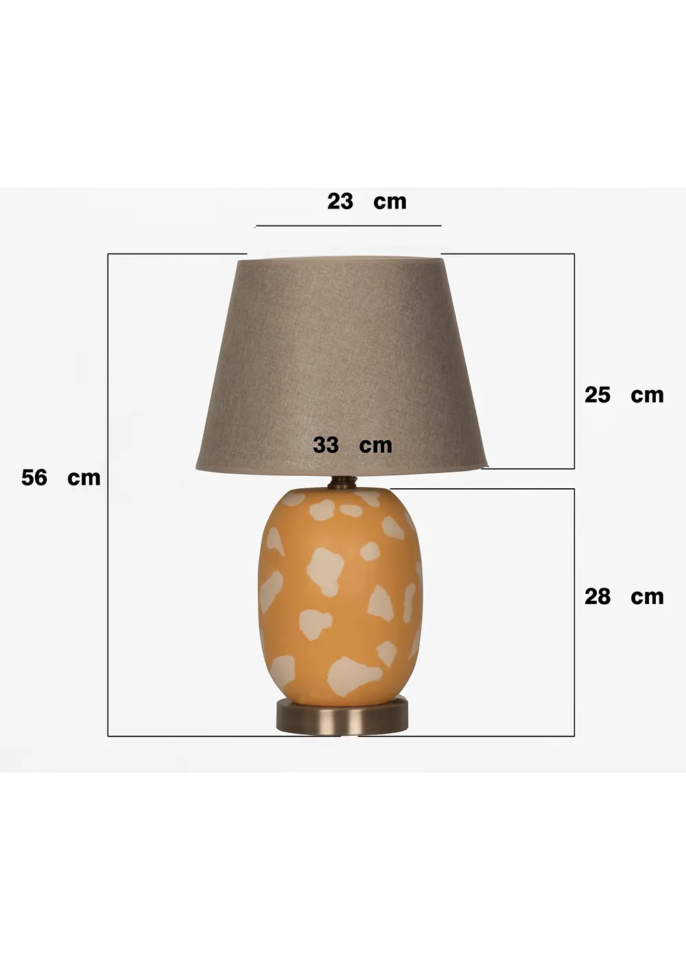 Gövde, turuncu zemin üzerine fırça ile uygulanmış organik desenlere sahip el yapımı seramikten üretilmiştir. Mat vernikli yüzeyi, doğal ve sıcak bir dokusal etki sunar.