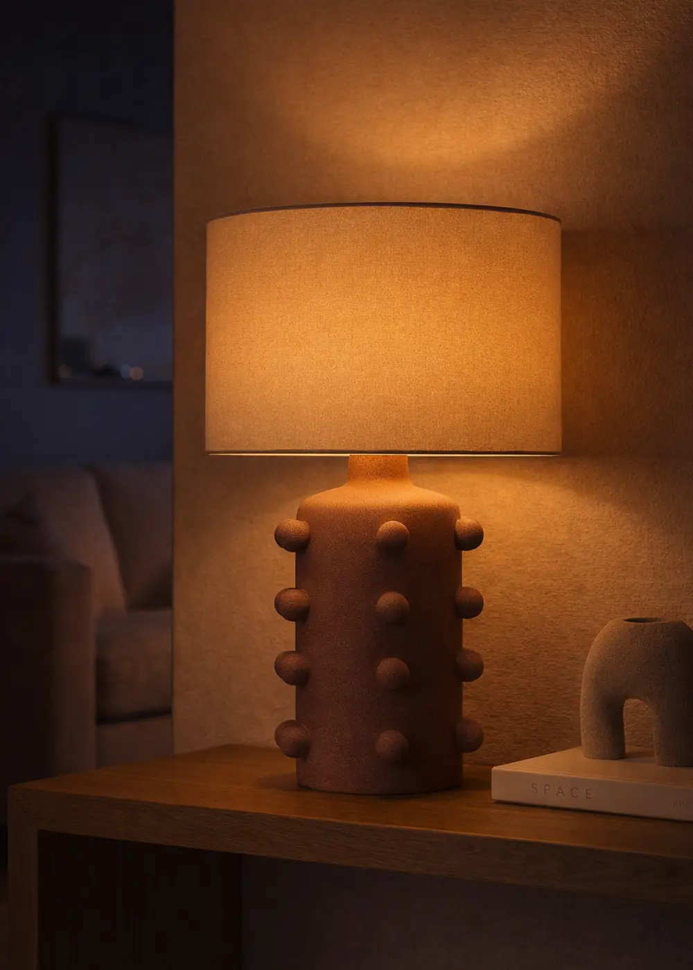 Valencia El Yapımı Seramik Abajur – Rose Gövde & Bej Başlık