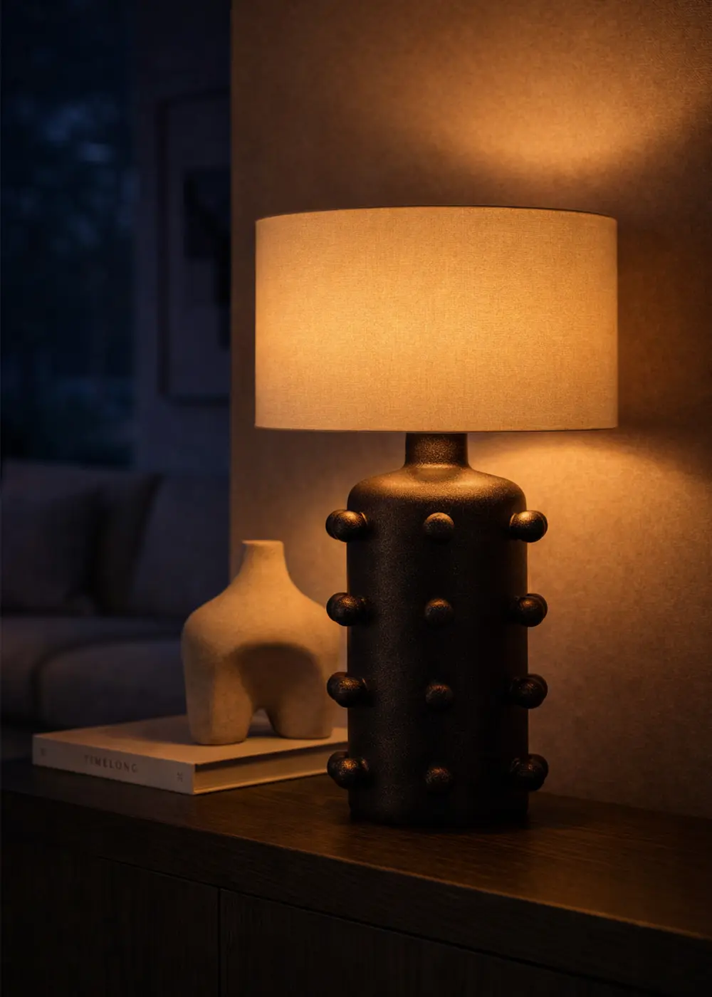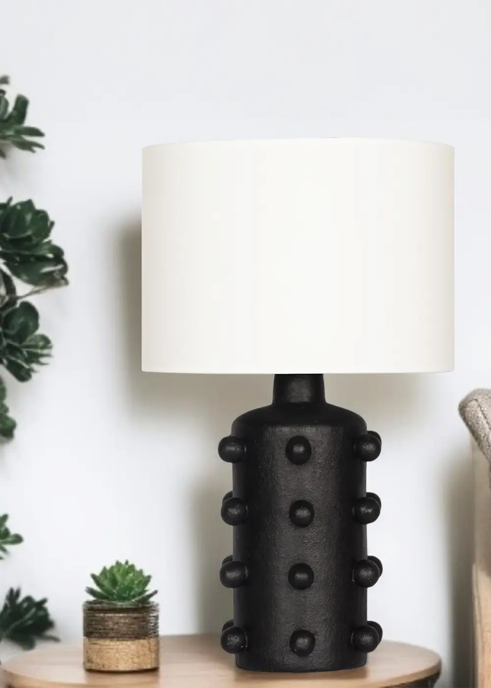 Valencia El Yapımı Seramik Abajur – Siyah Gövde & Krem Başlık