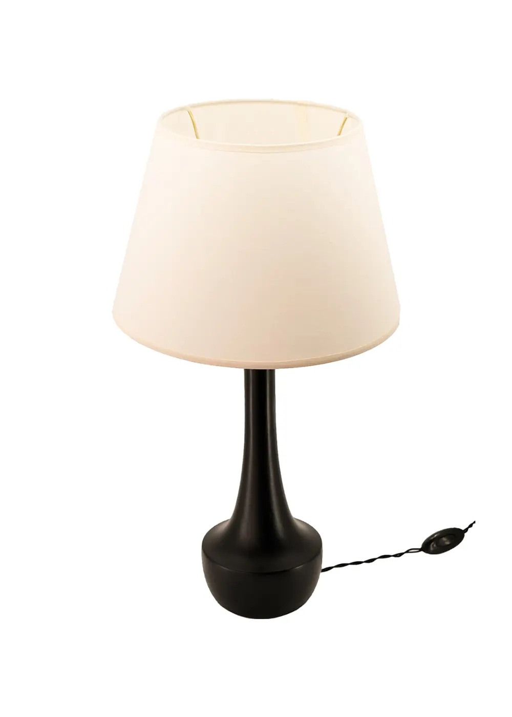 Masif ahşap gövde üzerine uygulanan siyah lake cila, modern ve net bir duruş kazandırırken; beyaz başlık ışığı yumuşatarak mekâna sakin ve dengeli bir atmosfer yayar. Bu aydınlatma ürünü, hem çağdaş hem de klasik dekorasyon stilleriyle uyum sağlayacak zamansız bir tasarım lamba alternatifidir.