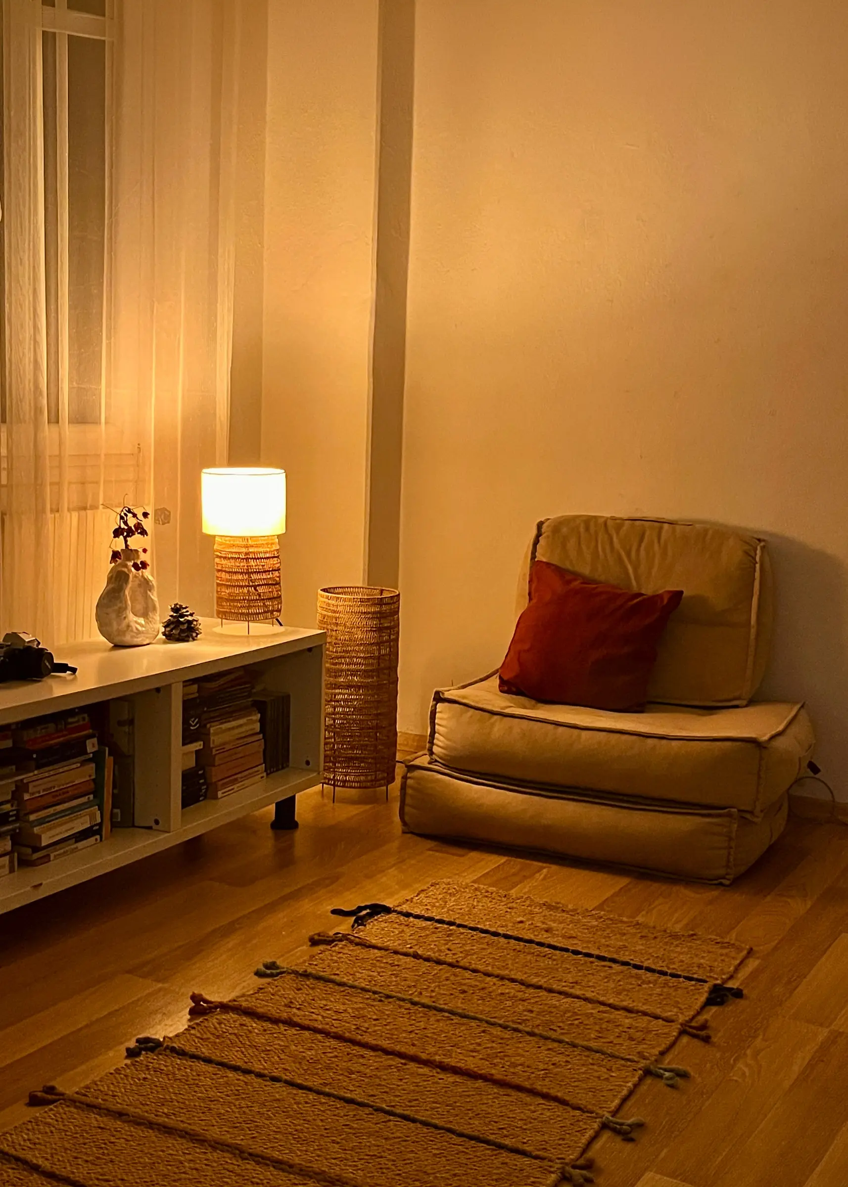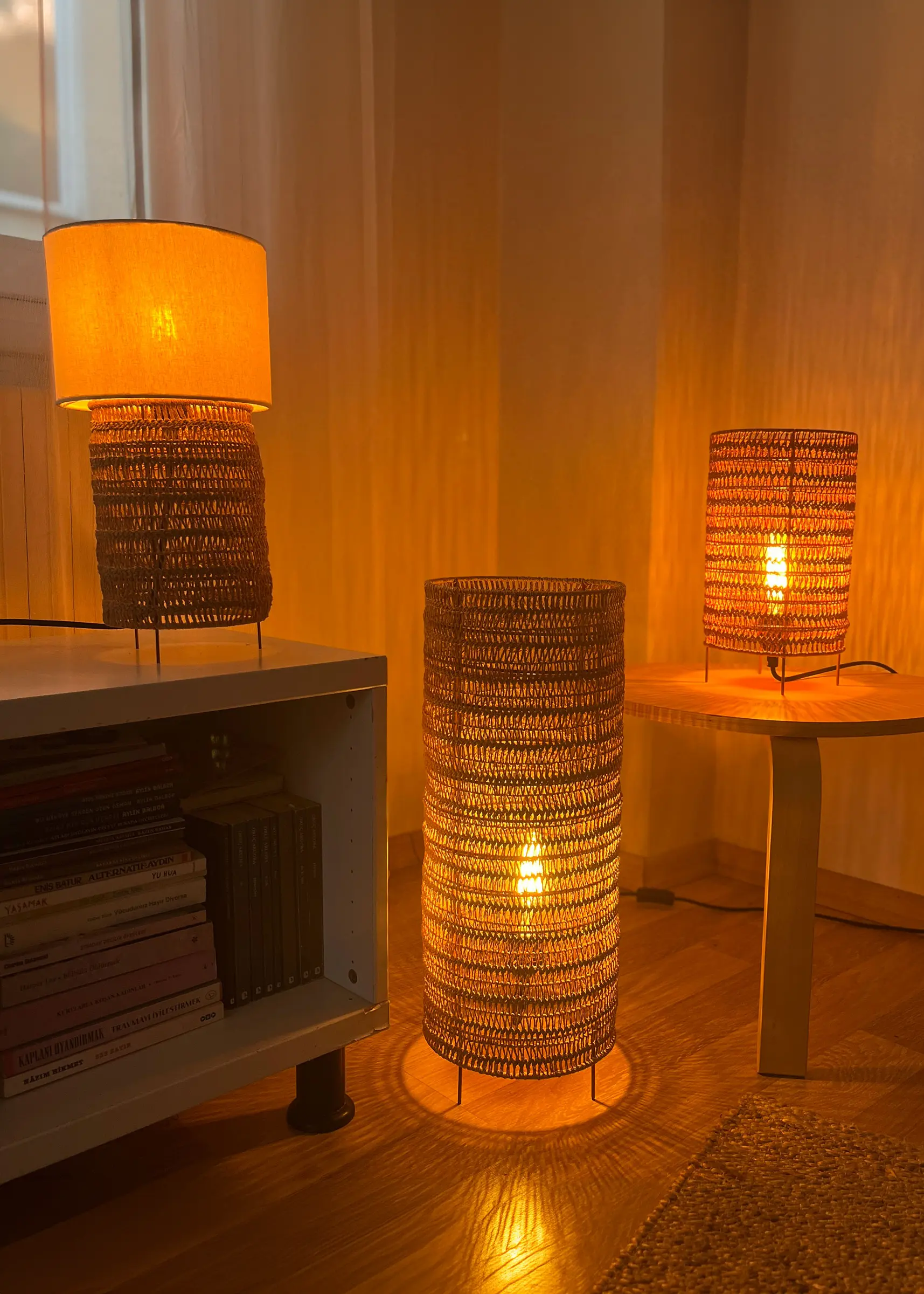 Malzeme: Kağıt ip (doğal boya ile boyanmış), kumaş, demir